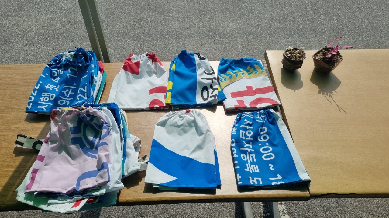 용평면 새마을협의회는 관행적으로 소각처분 해왔던 폐현수막으로 앞치마 형태의 농사용 주머니와 작업용 발토시를 만들어 주민들에게 무료로 나누어 주어 큰 호응을 얻고 있는데, 이는 환경오염을 줄이고 탄소중립을 실현하는 첫 걸음으로, 향후 폐현수막을 활용한 다양한 방법을 모색중이다.