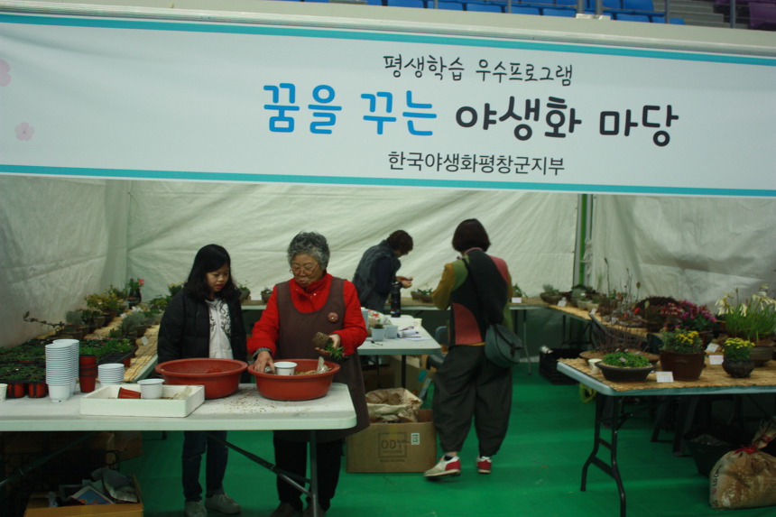 서울서도 교육을 많이 했어요. 고양시, 파주시 등등 세 군데를 하다가 이리로 내려왔는데 평창군청에 가서 야생화 반 하나 개강해 주세요. 하니 공무원들이 길에 천지인데(평창은 야생화가 많다보니) 뭔 야생화 공부를 해요. 라고 했었어요. 제가 그 후로 노성제 때 작품전시회 때 내고 그랬더니 그다음부터 공무원, 학교 선생님 교육청 모두 인정해 주셔서 유치원부터 학교에서 와서 교육 체험하러 와요.