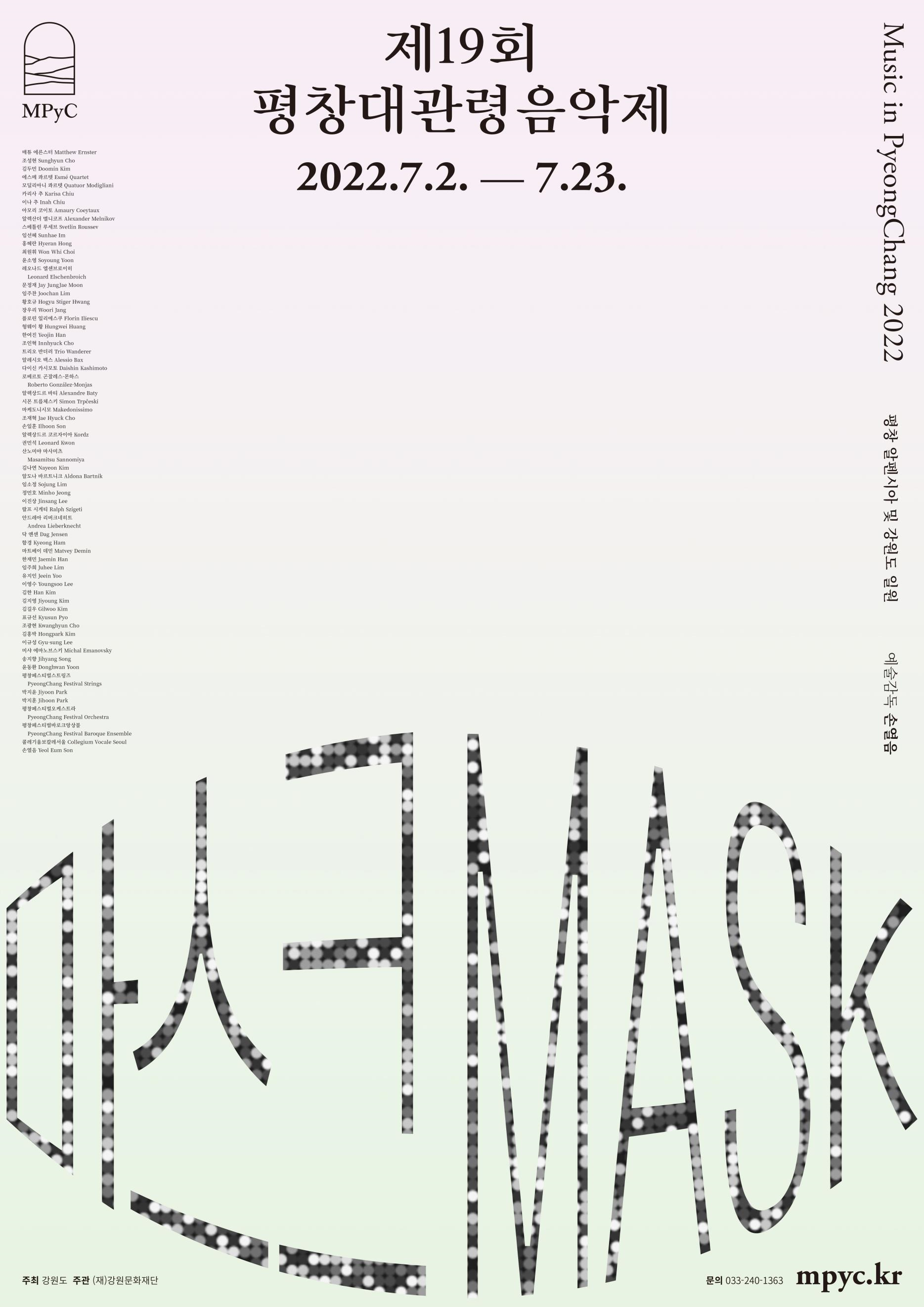 강원도가 주최하고 강원문화재단이 주관하는 제19회 평창대관령음악제가 7월 2일부터 23일까지 강원도 일원에서 개최된다. “마스크(MASK)”를 주제로 열리는 이번 음악제는 엔데믹에 걸맞는 성대한 축제로 최장기간, 최대 규모로 치러질 예정이다.