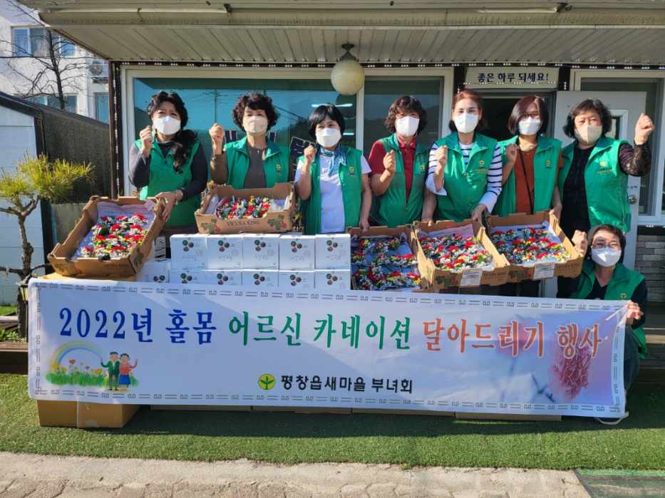 평창군 평창읍새마을부녀회(회장 원금숙)6(), 어버이날을 맞아 평창읍 각 마을 홀몸 어르신 총 80분에게 카네이션을 달아드리고, 건강 선식을 나눠드리는 행사를 진행했다.