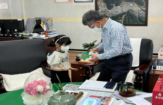 대화어린이집(원장 이부녀)에서는 5월 8일 어버이날을 맞아 대화면사무소를 방문하여 대화 꿈나무들이 고사리손으로 직접 만든 카네이션과 꽃비누를 이용화 대화면장과 직원들에게 전달하였다.