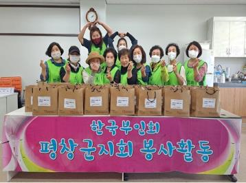 한국부인회평창군지회(회장 김진란)는 가정의 달을 맞아 관내 홀로 어르신 등 20여 가구를 방문하여 떡, 과일, 음료 등의 먹거리와 함께 카네이션 꽃을 전달하였다.