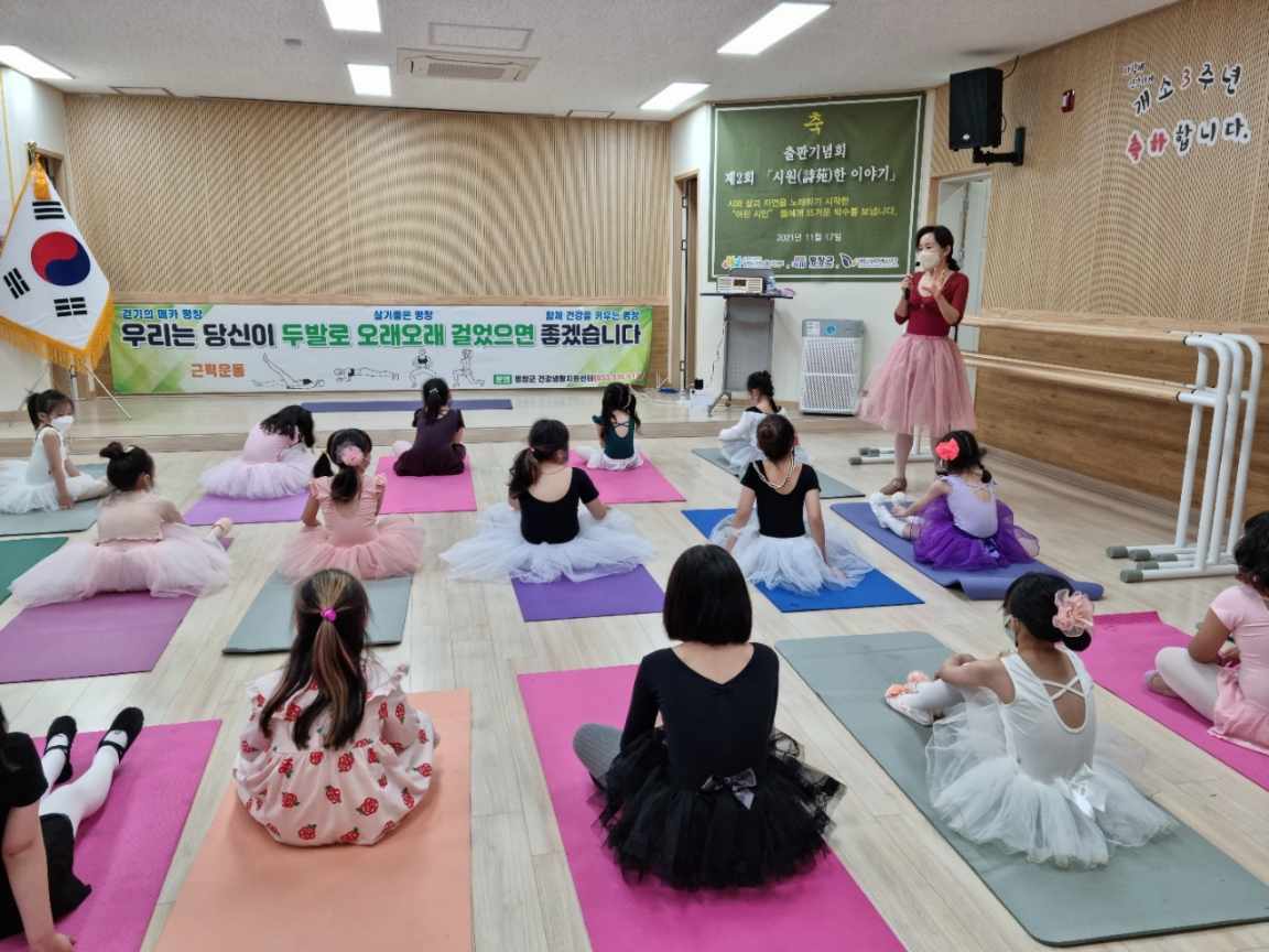 어린이 발레 교실은 농촌지역에서 쉽사리 접할 수 없는 운동에 대한 주민들의 폭발적인 관심과 호응을 얻어, 지난해에 이어 2개 반 운영에서 3개 반으로 확대 운영중으로, 지역 6~9세 어린이를 대상으로 이달부터 매주 월, 수요일에 1시간씩 진행되고 있다.