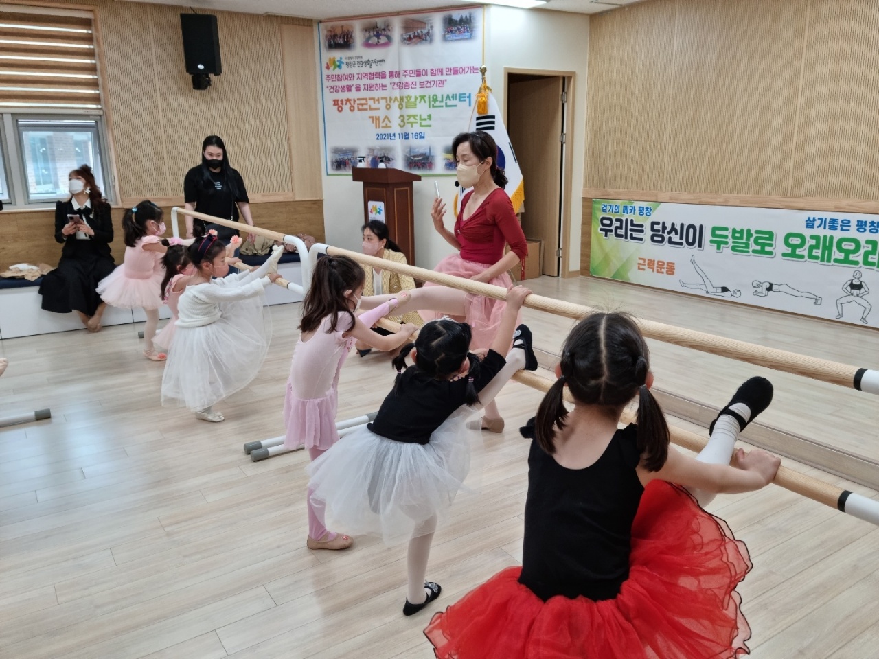 평창군건강생활지원센터는 성장기 아동들의 성장판을 자극하여 키 크는데 도움을 주는 어린이 발레 운동 교실을 운영 중이다.