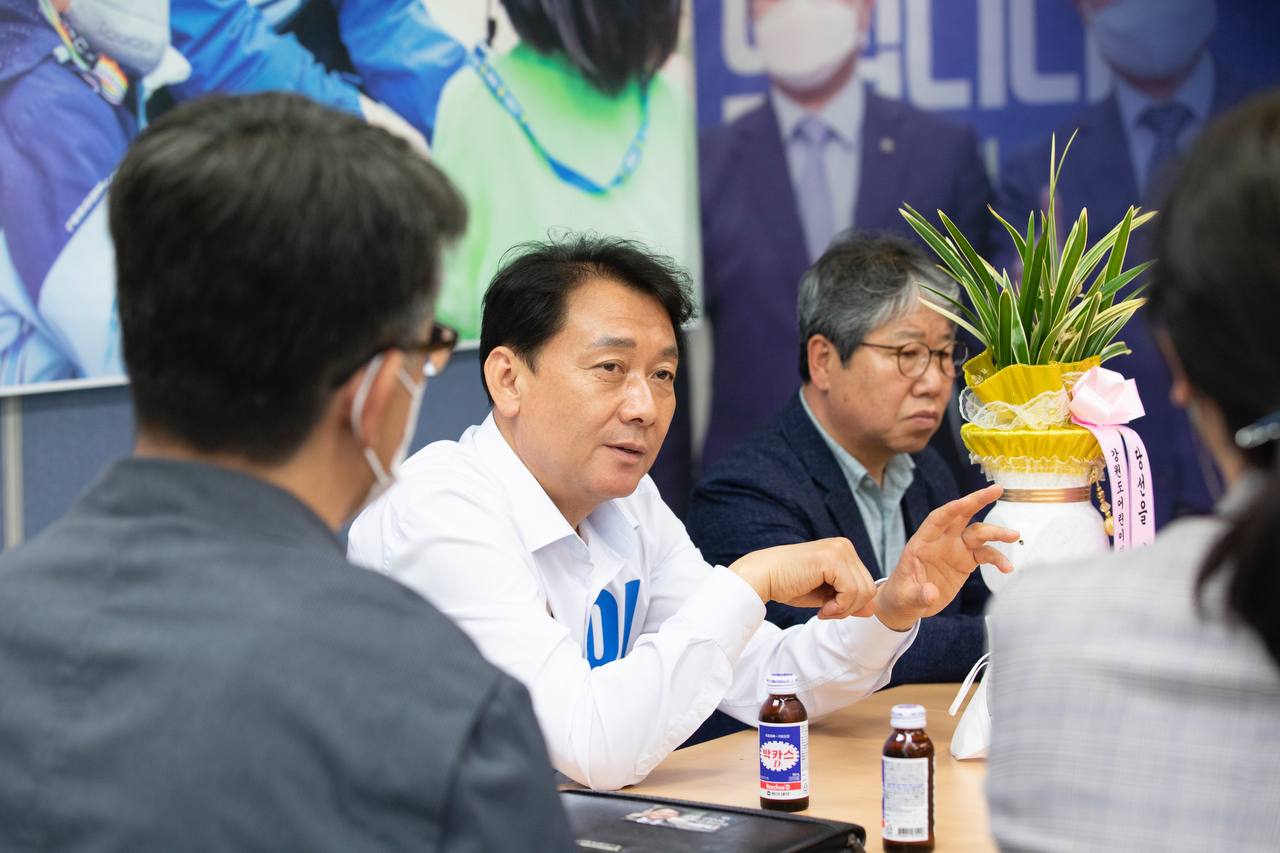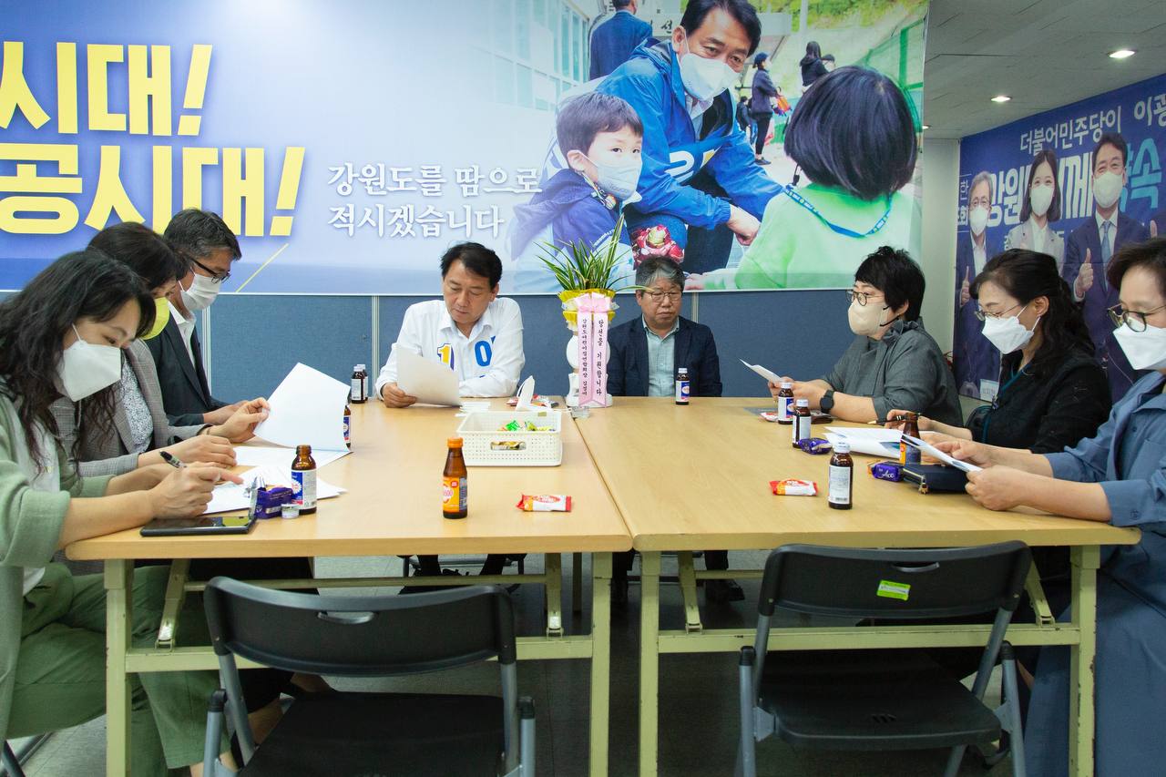 ‘돌봄도지사’ 이광재 더불어민주당 강원도지사후보가 17일 춘천 강원성공캠프를 방문한 어린이집연합회 측을 만나 ‘교육혁신협의체 구성’과 ‘좋은 교사’ 확보 등을 약속했다.