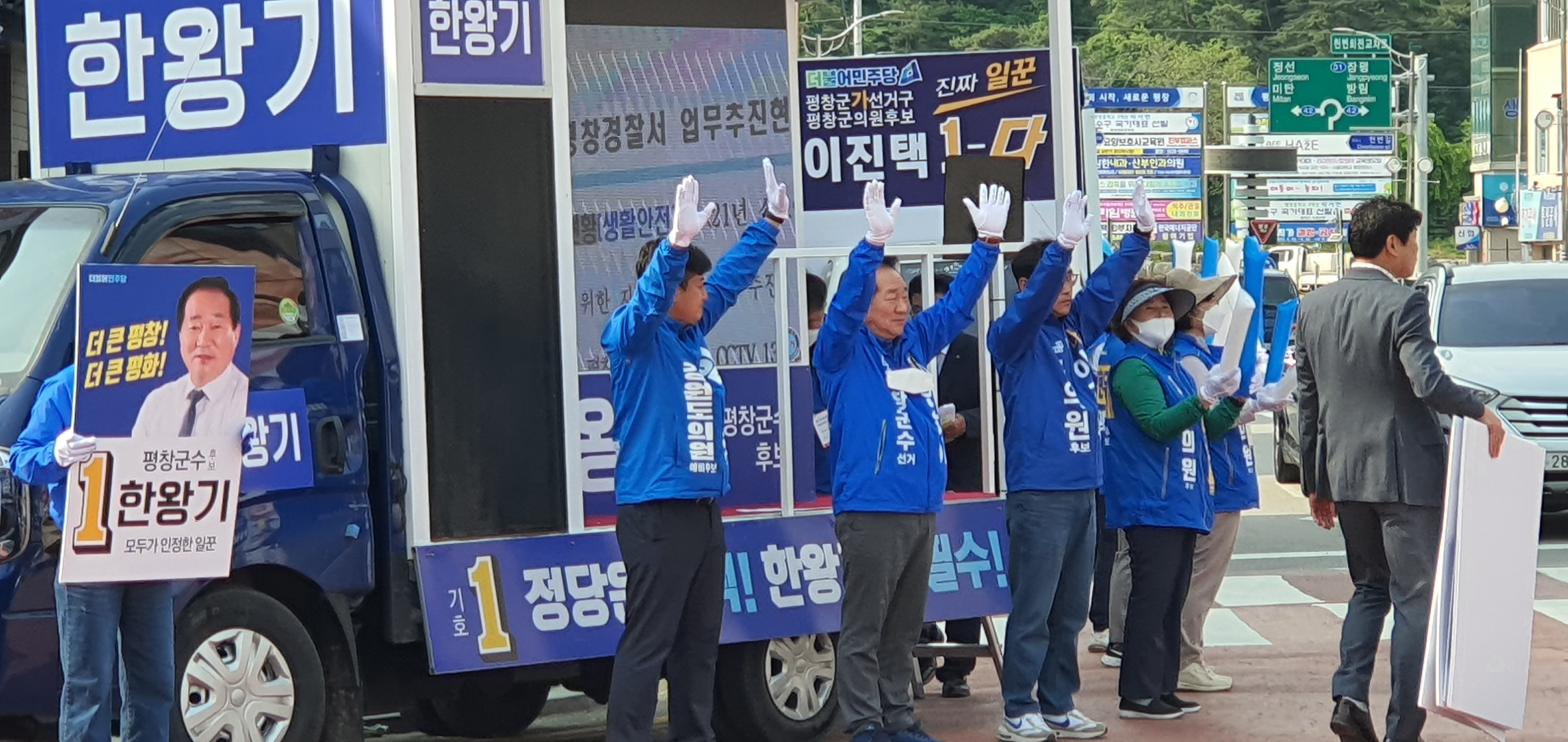 더불어민주당 한왕기 평창군수 후보는 공식선거운동 첫날인 5.19() 오전 9시 평창읍 사거리에서 지지자와 선거운동원, 유권자들이 지켜보는 가운데 승리를 다짐하는 출정식을 열고 13일 간 이어지는 열전의 선거운동에 돌입했다.