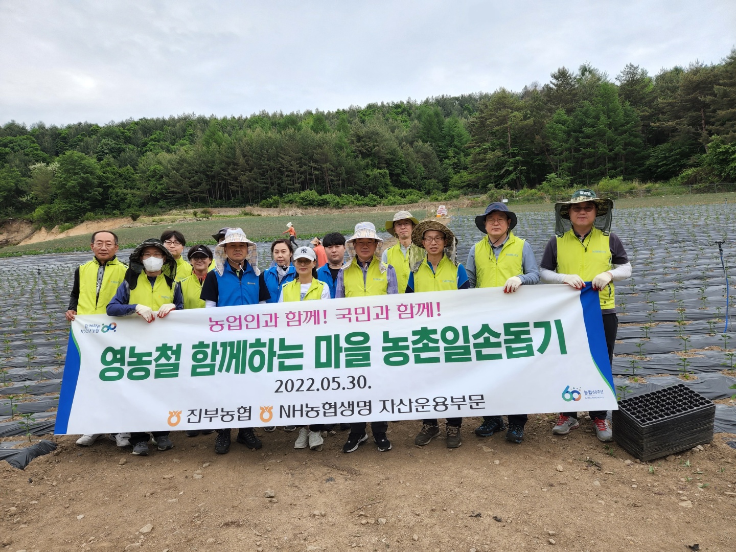 5월30일(월) 진부농협은 NH농협생명 자산운용부문과 평창군 사회 복지 협의회 40여명이 참여하여 합동 농가 일손돕기를 하였다. 이들은 진부면 마평1리, 거문리에 방문하여 인력부족으로 힘들어하시는 6농가를 방문하여 고추 지주대 설치 작업을 하였다. 진부농협 관계자는 “우리 지역 어려운 농가에 도움이 될 수 있도록 농가 일손돕기를 지속적으로 추진 하겠다” 하였다.
