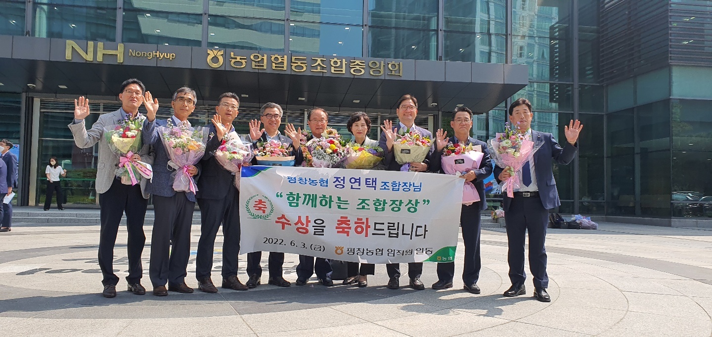 정연택 조합장은 “이번 수상은 평창농협 조합원이 농협에 대한 신뢰와 믿음으로 사업 전 이용과 임직원들의 그 동안의 노력을 인정받은 것이라”며“앞으로도 조합원의 소득 향상과 지역사회와 함께하는 평창농협을 만들기 위해 최선을 다할 것”이라고 소감을 말했다.