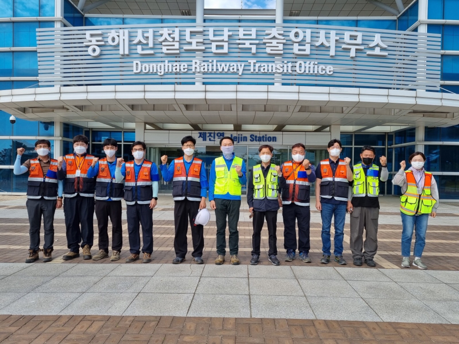 한국철도 시설안전기술단(대전본사)과 강원본부는 31일, 대한민국 최북단 철도시설인 제진역 역사를 비롯한 동해북부선(4.9km) 선로시설물 현장 점검을 시행했다.