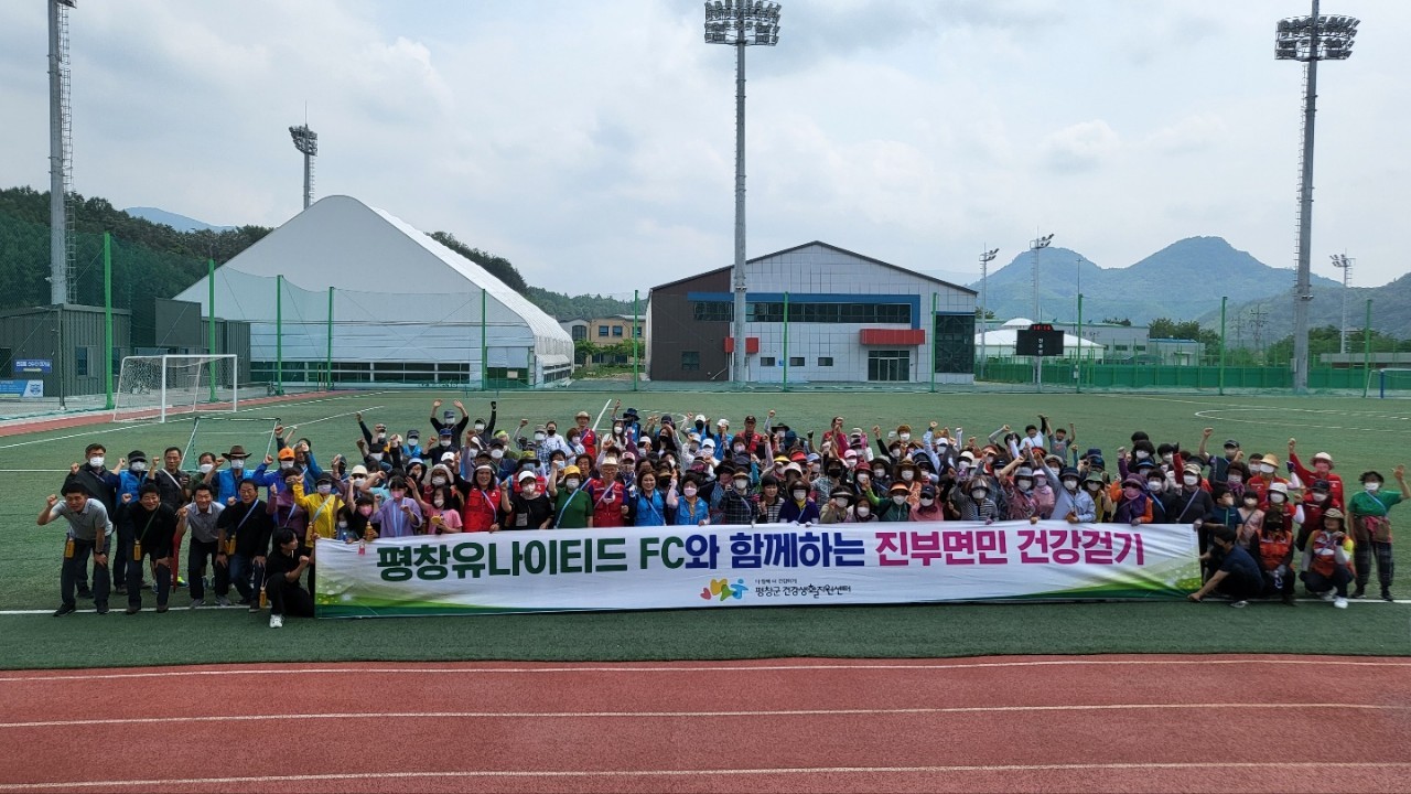 평창군건강생활지원센터는 18일 오후 진부면 체육공원 축구장에서 주민 300여명이 참여한 가운데 평창유나이티드 FC와 함께하는 건강걷기 행사를 개최했다.
