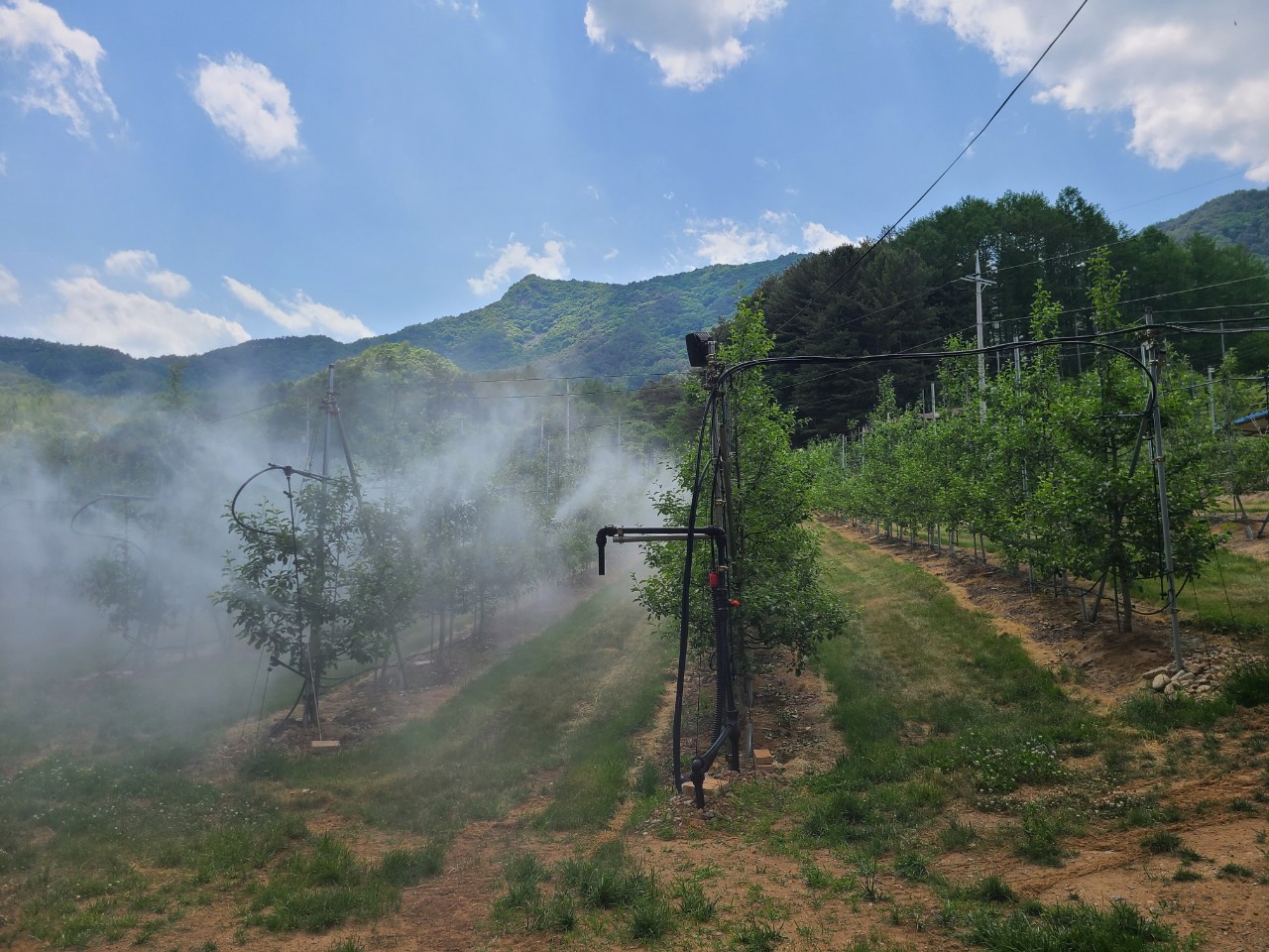 해당사업은 ‘원격·고정형’ 방제시설을 설치하여 약제노출 없이 단시간에 방제할 수 있도록 지원하는 사업으로, 군은 올해 초에 선정된 두 농가의 사과 과원(평창읍 다수리, 대화면 상안미리)에 사업비 1억 원(국비 50%, 군비 50%)을 투입하여 방제 시설을 설치하였다.