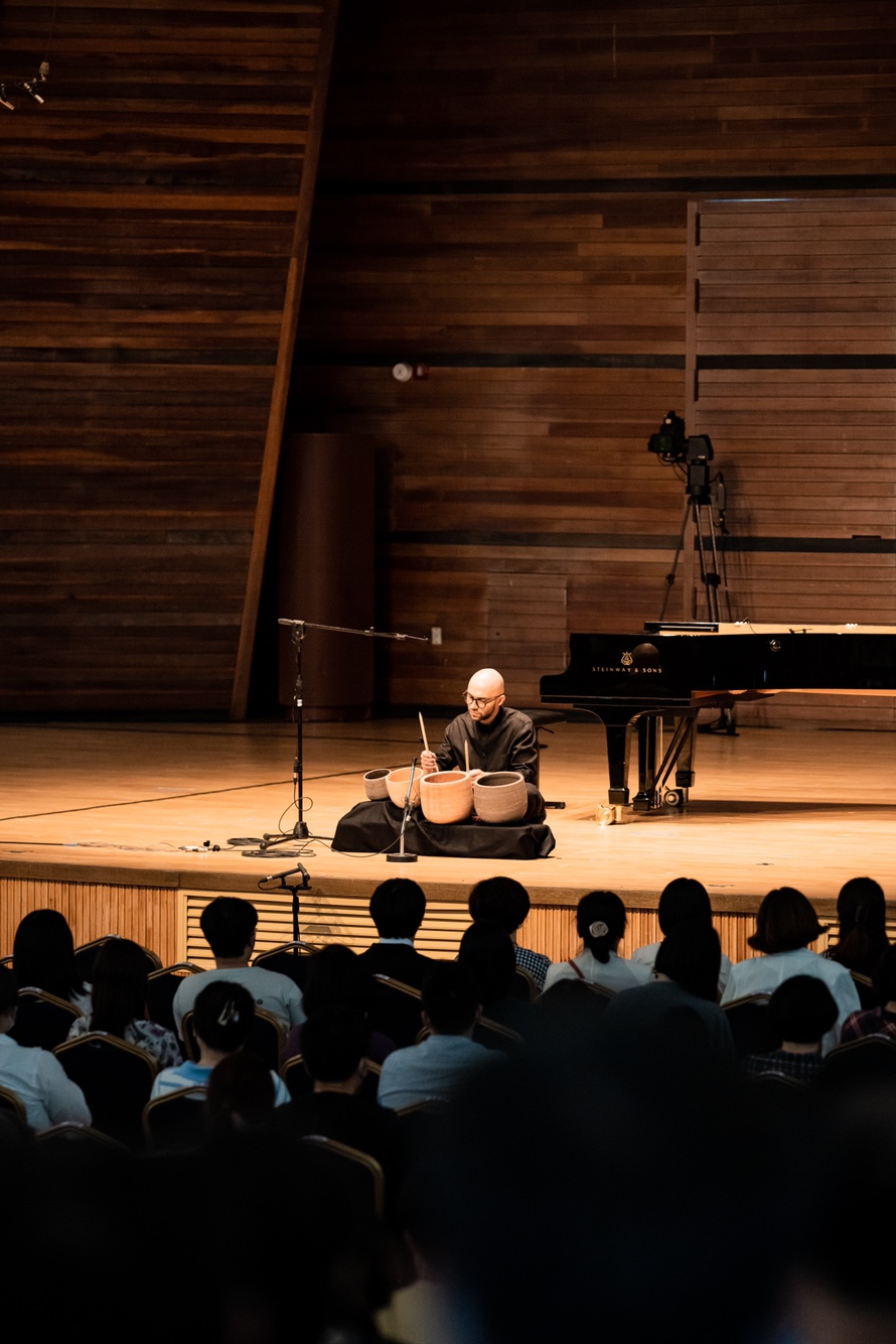 개막공연은 타악기 주자 메튜 에른스터가 무대에 올라 지난해 작고한 프레데릭 르제프스키의 대지에를 연주하며 음악제의 시작을 알렸다. 화분을 두드리며 고대 그리스 호메로스 찬가중의 한 편, “대지의 여신; 가이아에게를 읊으며 실험적이고도 참신한 무대를 선보였다. 두 번째 곡으로는 피아니스트 손열음과 첼리스트 김두민, 플루티스트 조성현이 함께 마스크를 쓰고 조지 크럼의 고래의 노래를 연주했다. 이번 음악제의 주제인 마스크와 맞닿아있는 곡으로 몽환적인 푸른빛의 조명과 연주자들이 쓴 가면만으로도 관객들의 이목을 집중시키기에 충분했다.