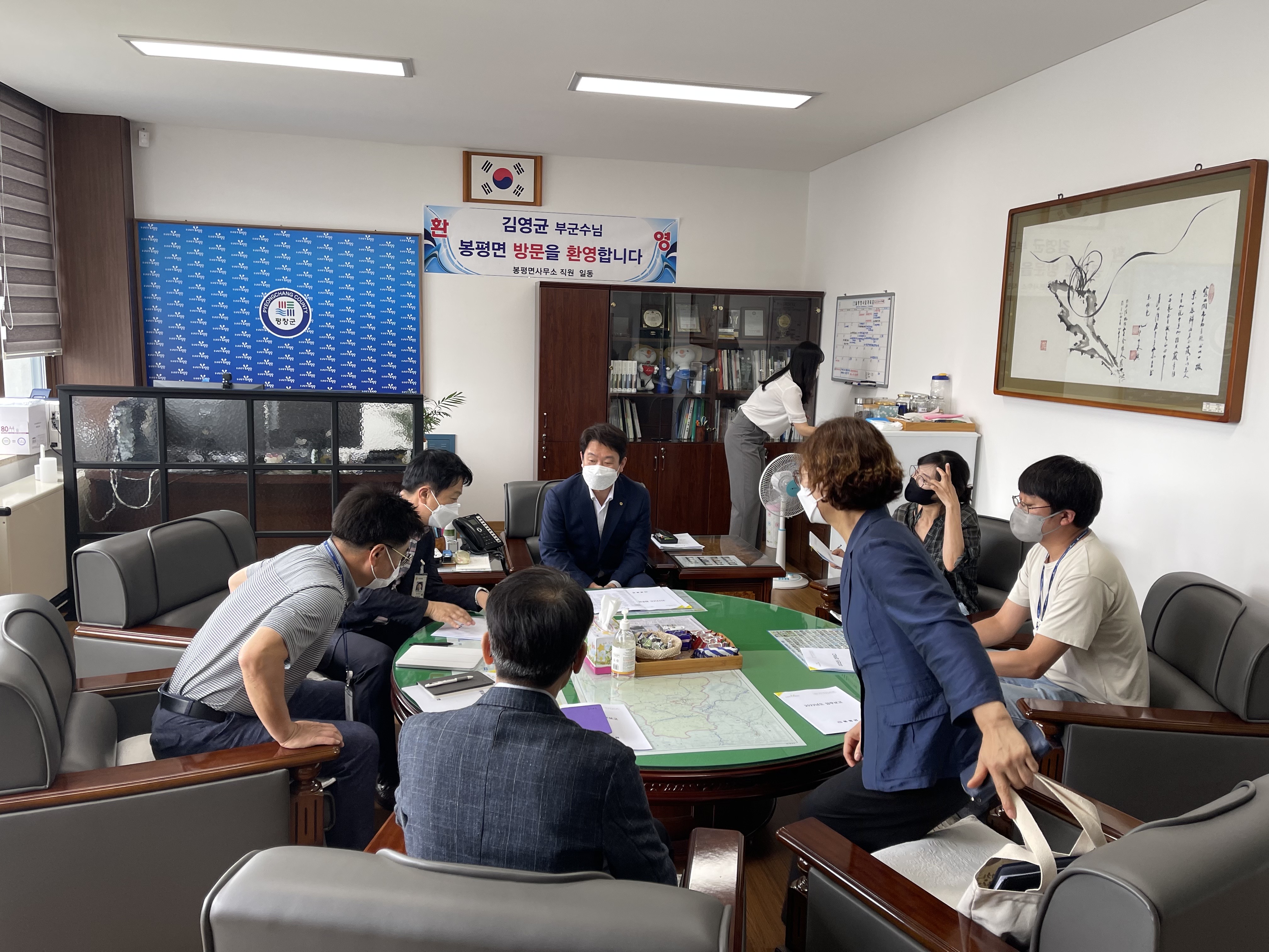 지난 7월 1일 제28대 평창 부군수로 취임하여 실과별 주요업무 보고 등으로 군정 업무에 대해 파악해 온 김영균 부군수는 이번 읍면 방문을 통하여 민원 일선에서 노력하는 직원들과 지역 현안에 대해서 소통하고 현장을 통하여 군정 전반에 대한 이해도를 높임으로써 효율적인 업무추진을 할 수 있는 기반을 다질 것으로 기대된다.