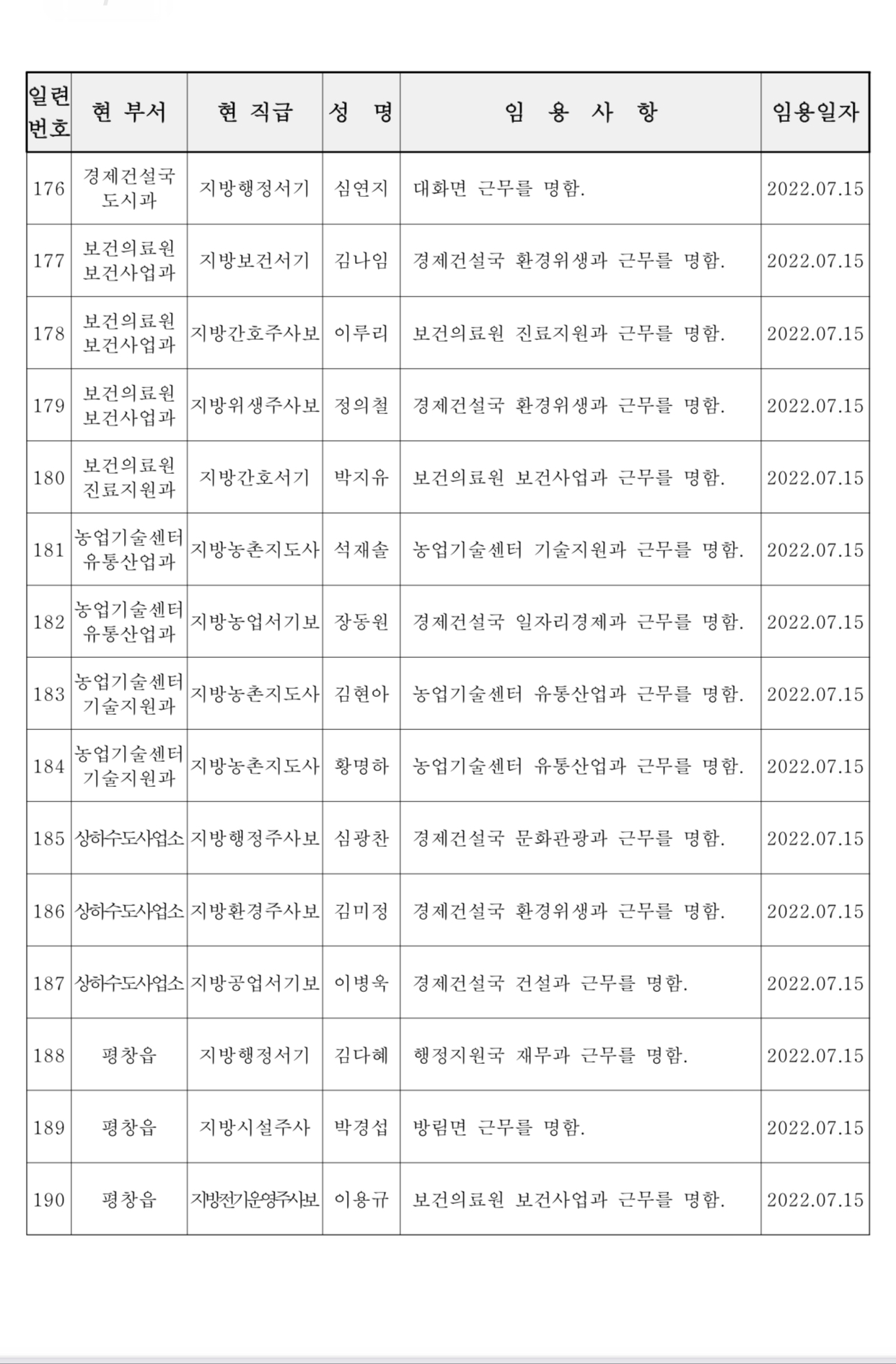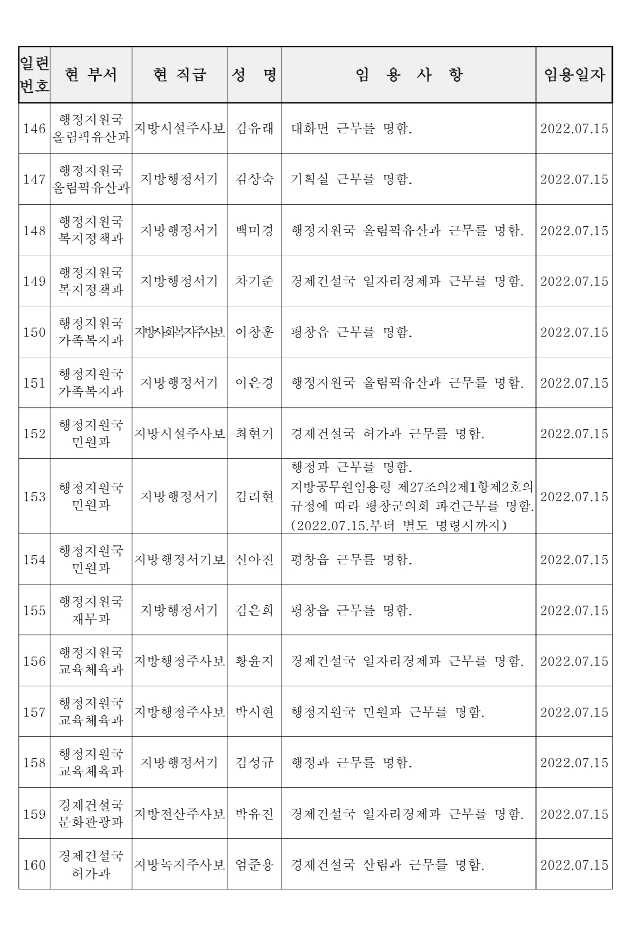평창군은 15일, “하나된 평창, 행복한 군정” 슬로건 아래 민선8기 군정의 성공적 출범을 위한 첫 정기인사를 단행했다.