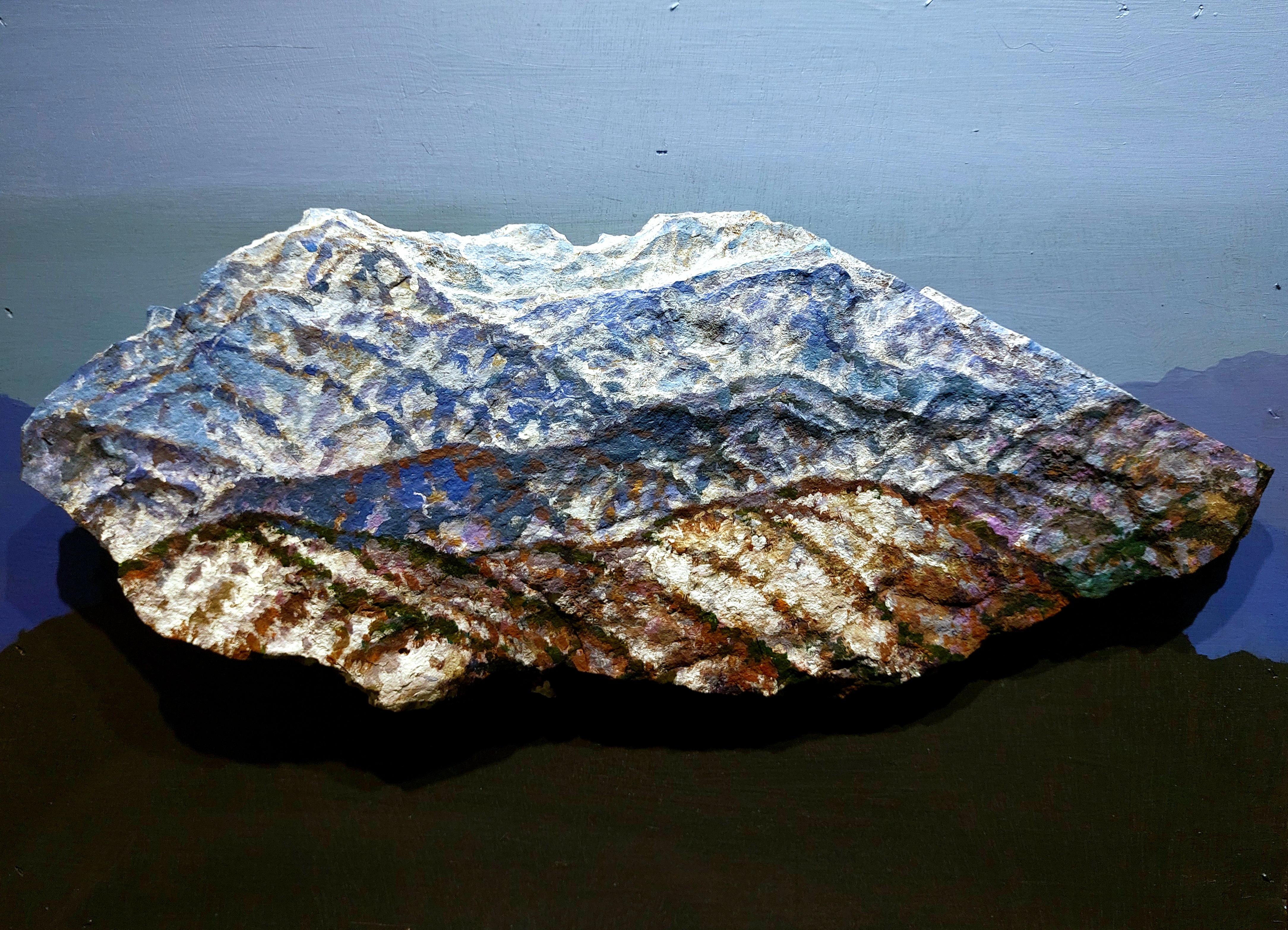 그런데 돌아보면 최초의 그림은 돌 그림이었다. 몇백 년이나 기껏 몇천 년의 타블로나 캔버스보다 알타미라나 라스코, 인도네시아 동굴벽화처럼 수만 년의 유구한 세월을 견뎌온 그림은 역시 돌에 새긴 그림이지 않던가? 그렇다면 서구 교육에 반하는 태도, 고도의 자본주의보다 생태주의자인 작가에게 어울리는 것은 돌 그림이지 않을까.