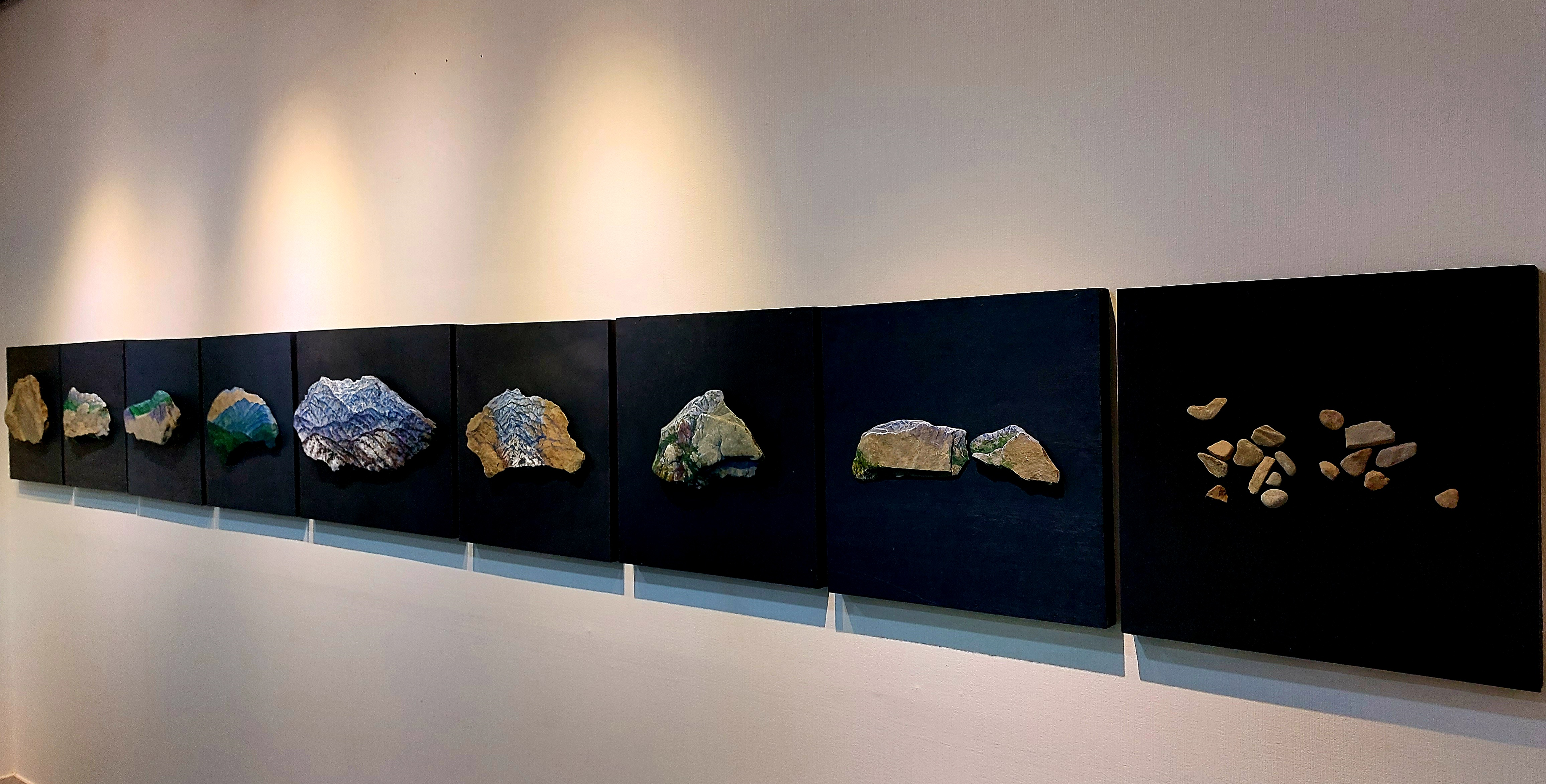 또 하나의 스펙트럼은 ‘시간’이다. 그것을 담은 작품이 전시 공간의 중심을 이루고 있다. 돌덩어리로부터 자연의 충격과 풍화 속에 드러난 주름이 마침내 화가에게 말을 걸어 그림이 된다. 자연과 작가의 만남 속에 이루어진 예술의 생성이다. 예술이 되었던 돌은 깨지고 흩어져 작은 파편이 되어 자연으로 돌아간다. 결국 생성과 소멸 속에 예술가의 흔적이 잠시 개입될 뿐 시간의 주인은 자연임을 보여준다. 그것을 일컬어 작가는 “돌의 표정이자 작품이 되기까지 ‘생성으로부터 소멸’의 과정을 보여주는 생태주의”라고 설명한다. 작가관이 집약되어 있는 작품이다.