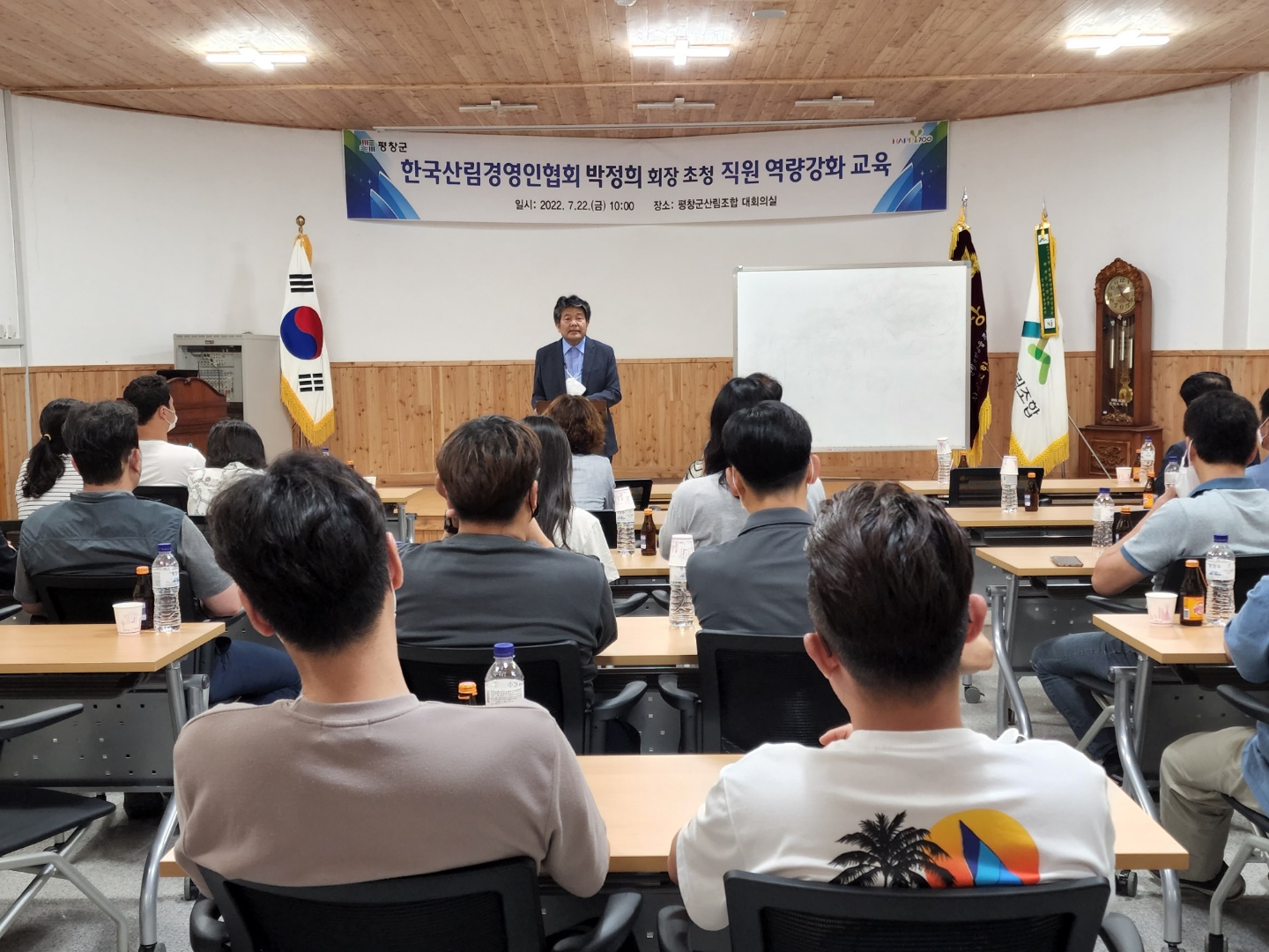 평창군 산림과는 7월 22일 평창군산림조합 대회의실에서 (사)한국산림경영인협회 박정희 회장을 초청하여 산림분야 관계자들에 대한 역량강화 교육을 실시하였다.