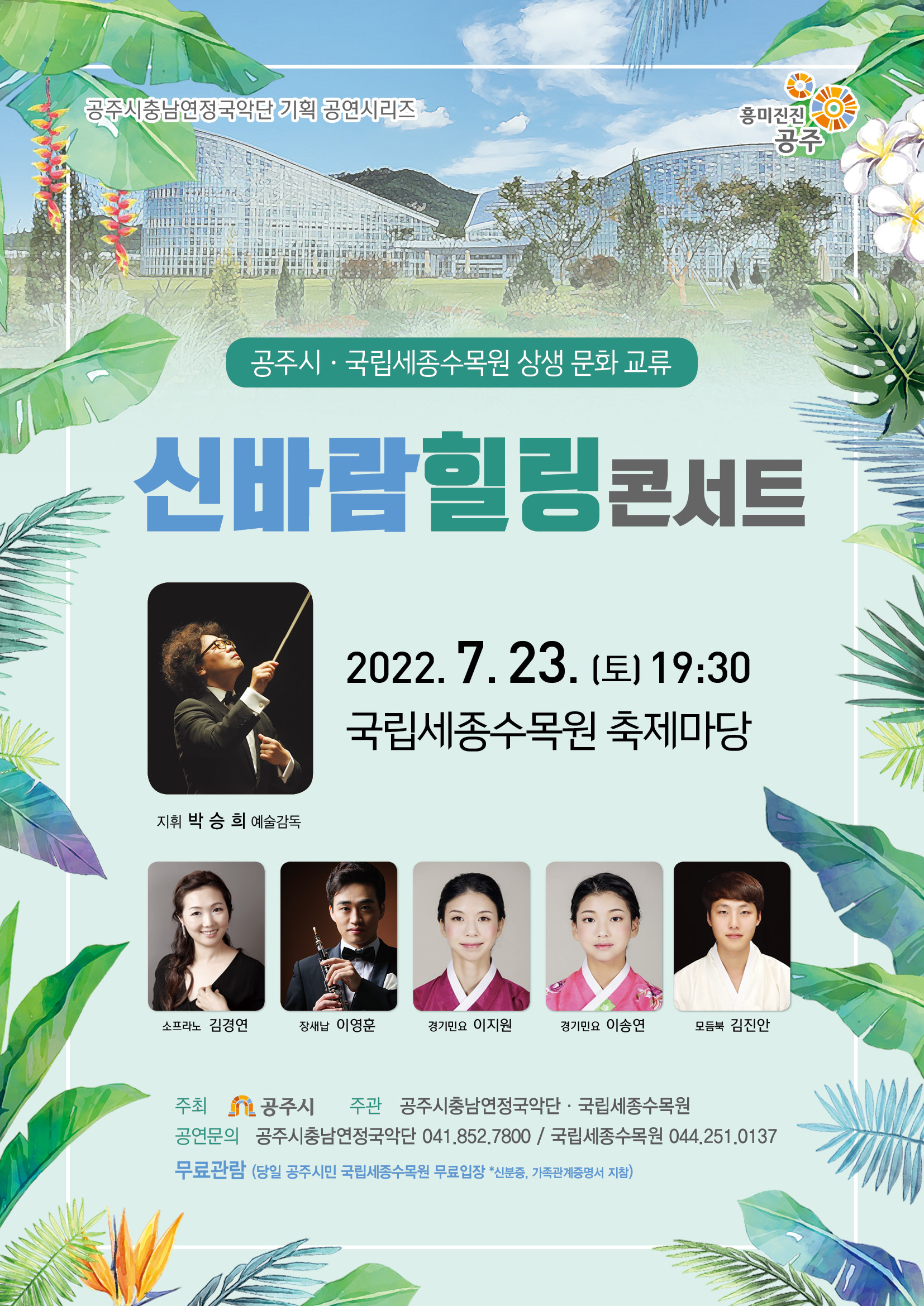 산림청 산하 한국수목원정원관리원(이사장 류광수)은 오는 7월 23일 국립세종수목원 축제마당 내 특설무대에서 ‘신바람 힐링 콘서트’를 개최한다고 밝혔다.