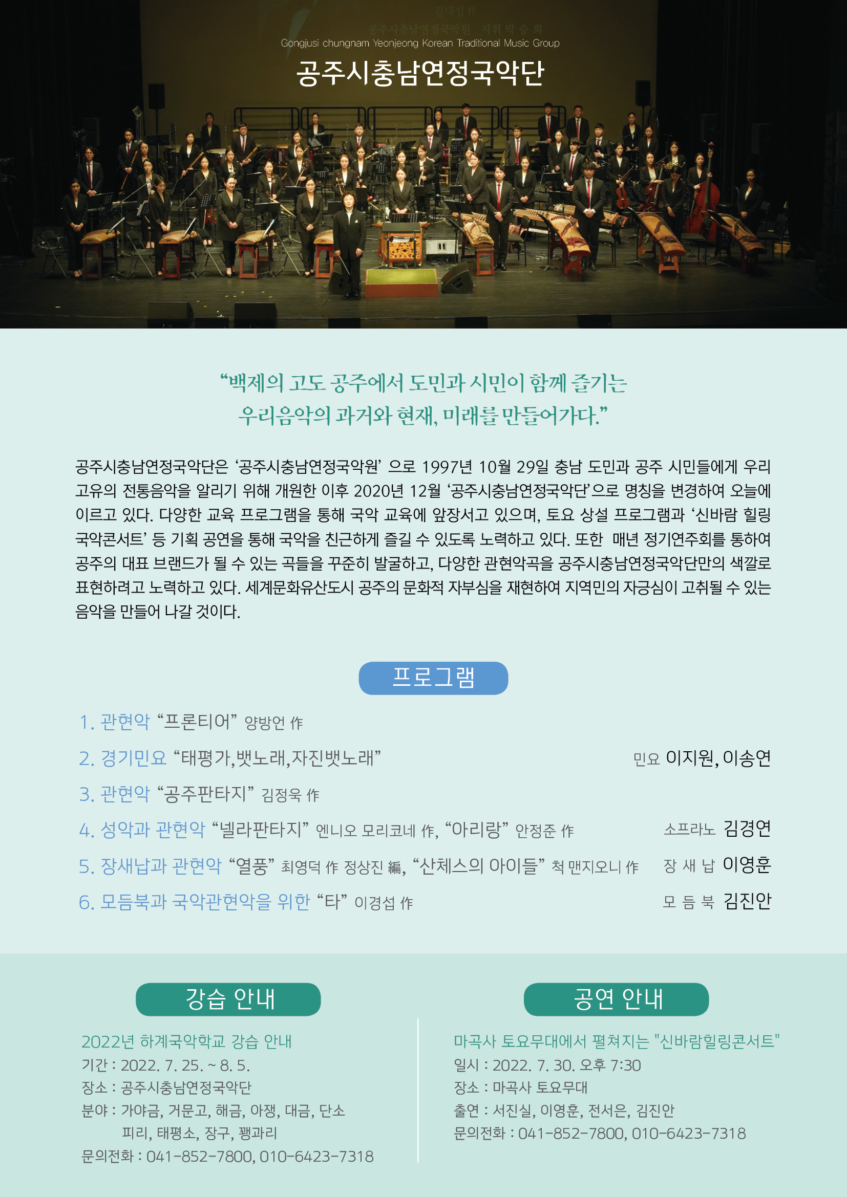 이번 콘서트는 국립세종수목원이 상생협력 문화교류를 위해 공주시충남연정국악단과 함께 마련했다.