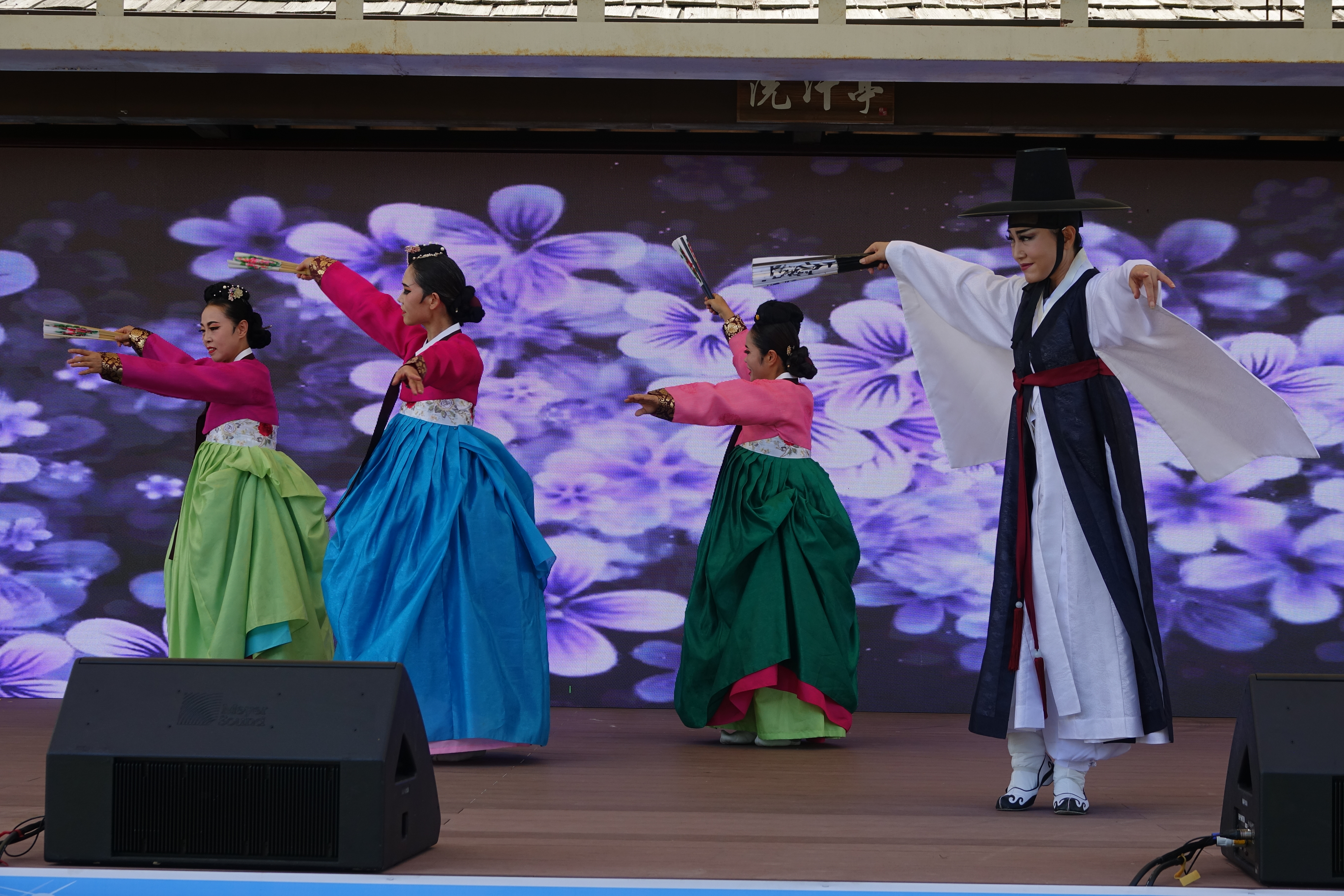 나래무용단은 평창군 유일의 전통 한국무용을 전승•발전시키고 보급하는 평창군 대표 무용단입니다. 각종 대회에서 우수한 성적을 내며 우리 고유 무용을 지키고 발전시킨다는 자부심으로 단원 모두가 최선을 다하는 무용단이다. 나래무용단은 30일 개막식전 공연으로 풍속도를 선보였다. 마을 의 풍류를 즐기는 선비와 마을 기녀 들이 자연을 벗삼아 즐기며 노는모습을 멋스럽게 표현한 춤이다.