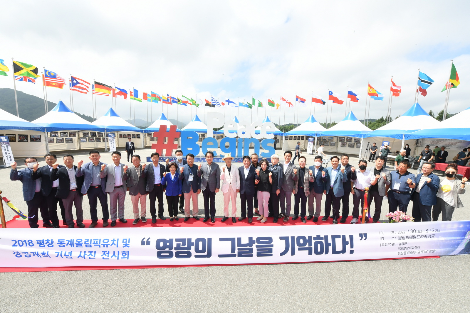 평창군의 후원으로 재단법인 평창평화센터(이사장 심재국)와 평창동계올림픽유치기념위원회(위원장 염돈설)가 함께 개최하는 전시회의 개막식은 730() 대관령면 횡계리 올림픽플라자 부지에서 심재국 평창군수(평창평화센터 이사장), 심현정 평창군의회 의장, 염돈설 위원장을 비롯한 유관기관 관계자 및 주민대표 등이 참석한 가운데 진행되었다.