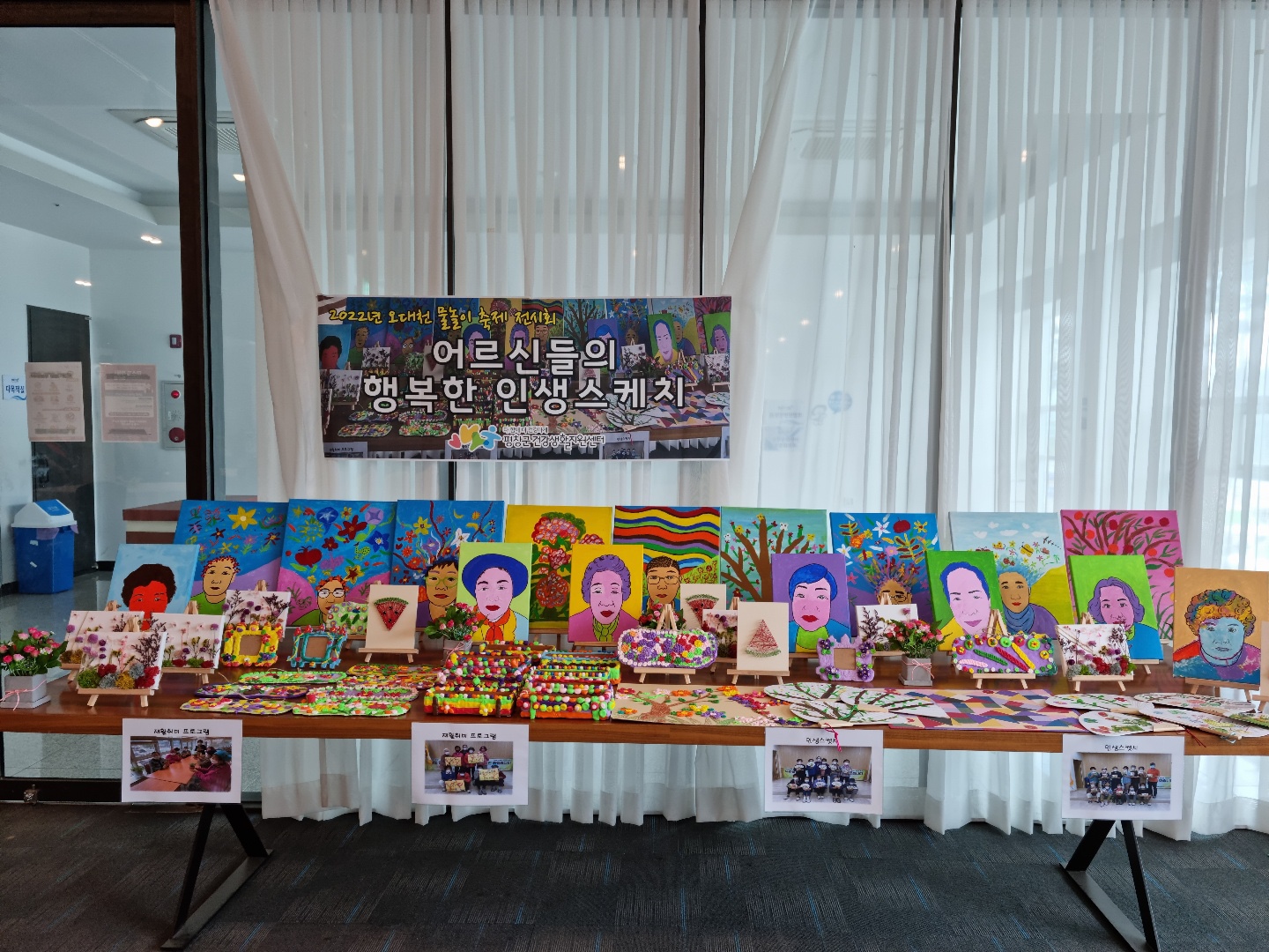 지난 상반기 건강생활지원센터에서 운영한 문화·힐링 프로그램 시원(詩苑)한 이야기 인생스케치에 참여한 어르신들이 직접 만든 시그림을 비롯한 클레이공예, 유화그리기, 부채아트 등 100여점의 작품을 전시하고 있으며, 전시회는 누구나 무료로 관람할 수 있다.