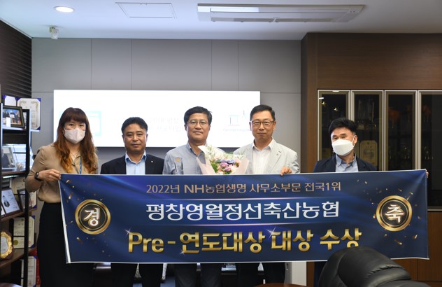 평창영월정선축협(조합장 고광배)은 8월 2일 오전 11시, 본점 2층 조합장실에서 NH농협생명에서 실시한 『2022년 Pre-연도대상』 사무소부분 대상 시상식을 가졌다.
