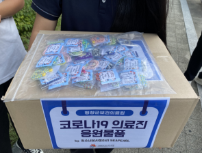 17일, 국립평창청소년수련원 봉사동아리 SEA PEARL(회장 대화중 2학년 김은아)은 지역사회 코로나19 감염증 확산 대응으로 고생하는 보건의료원 직원들은 격려하기 위해 봉사동아리에서 직접 만든 마스크 걸이와 다과 등을 전달했다.