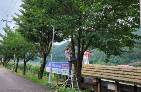 평창읍 정화건설, 백일홍 축제장 주변 가지치기 봉사활동 실시