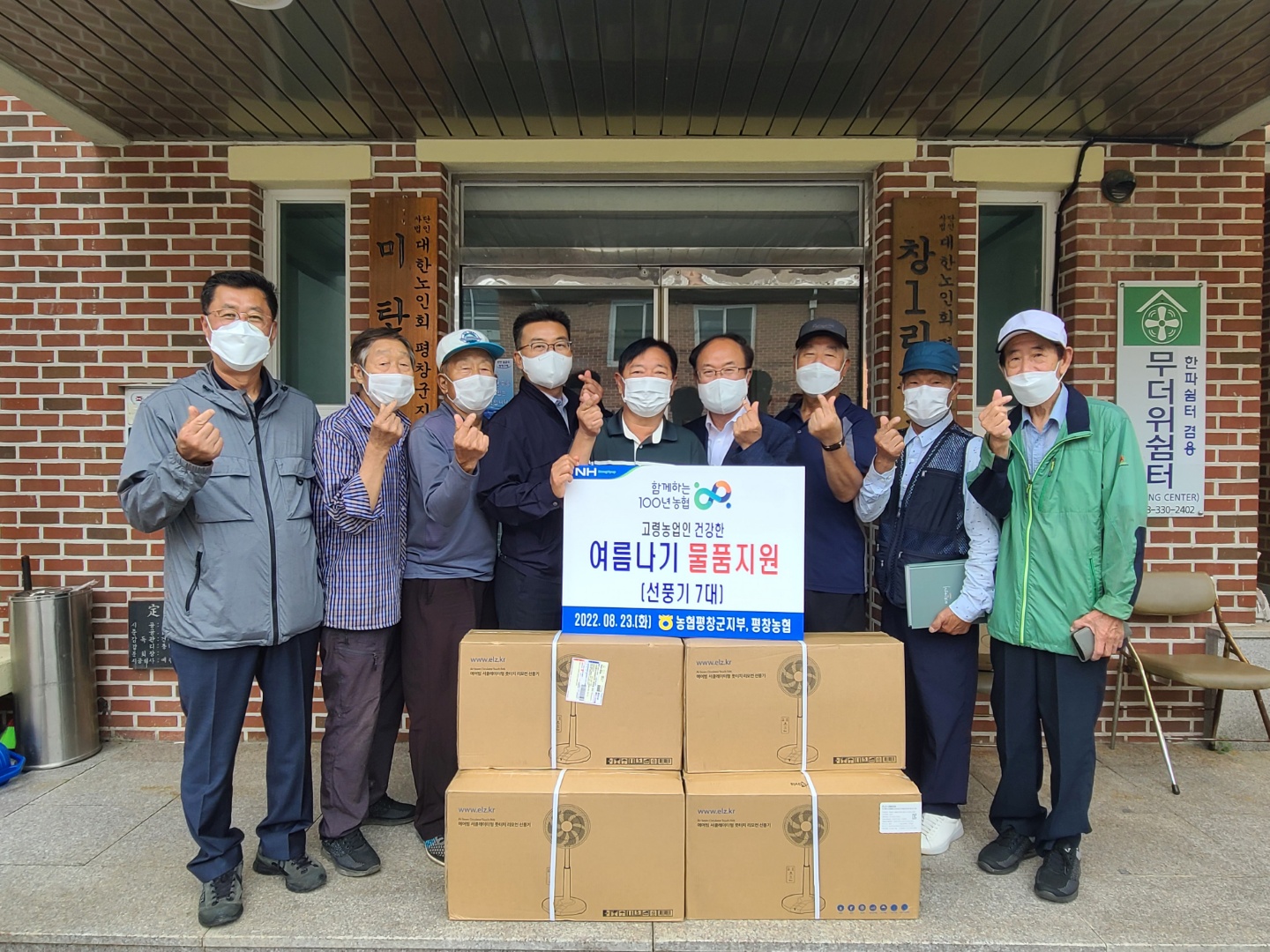농협평창군지부(지부장 최창순)과 평창농협(조합장 정연택)은 평창면 미탄면 노인회 에서 지난 23() 더위에 약한 고령·취약계층 농업인들이 무더운 여름을 시원하게 이겨낼 수 있도록 평창군 미탄면 노인회에 선풍기 7대를 후원했다.