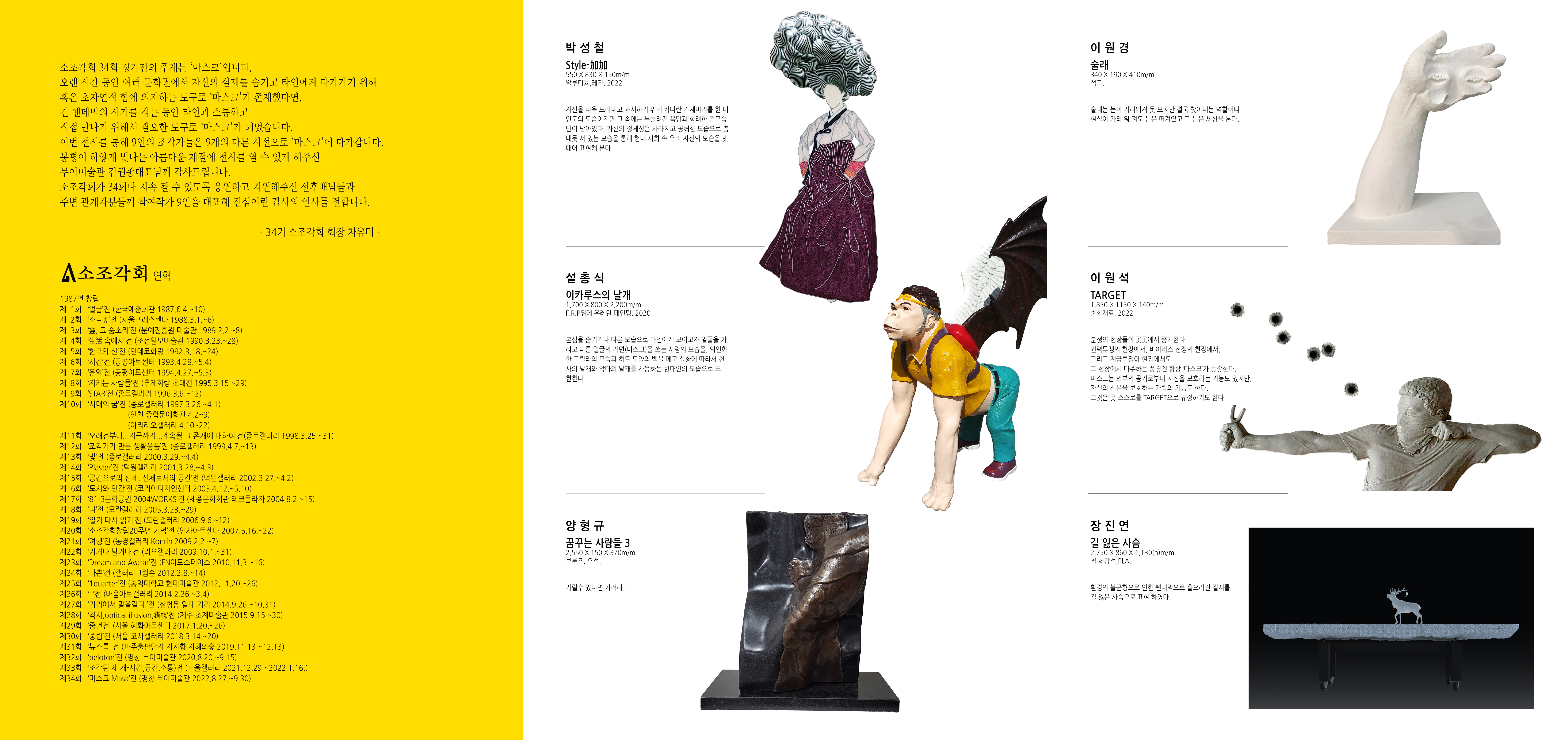 한편 소조각회는 홍익대학교 조소과 출신의 작가를 중심으로 1987년 창립된 조각가 그룹으로 매년 별도의 특별 주제를 정하고 이를 독창적인 조형 어법으로 풀어낸 주제展을 열고 있다.