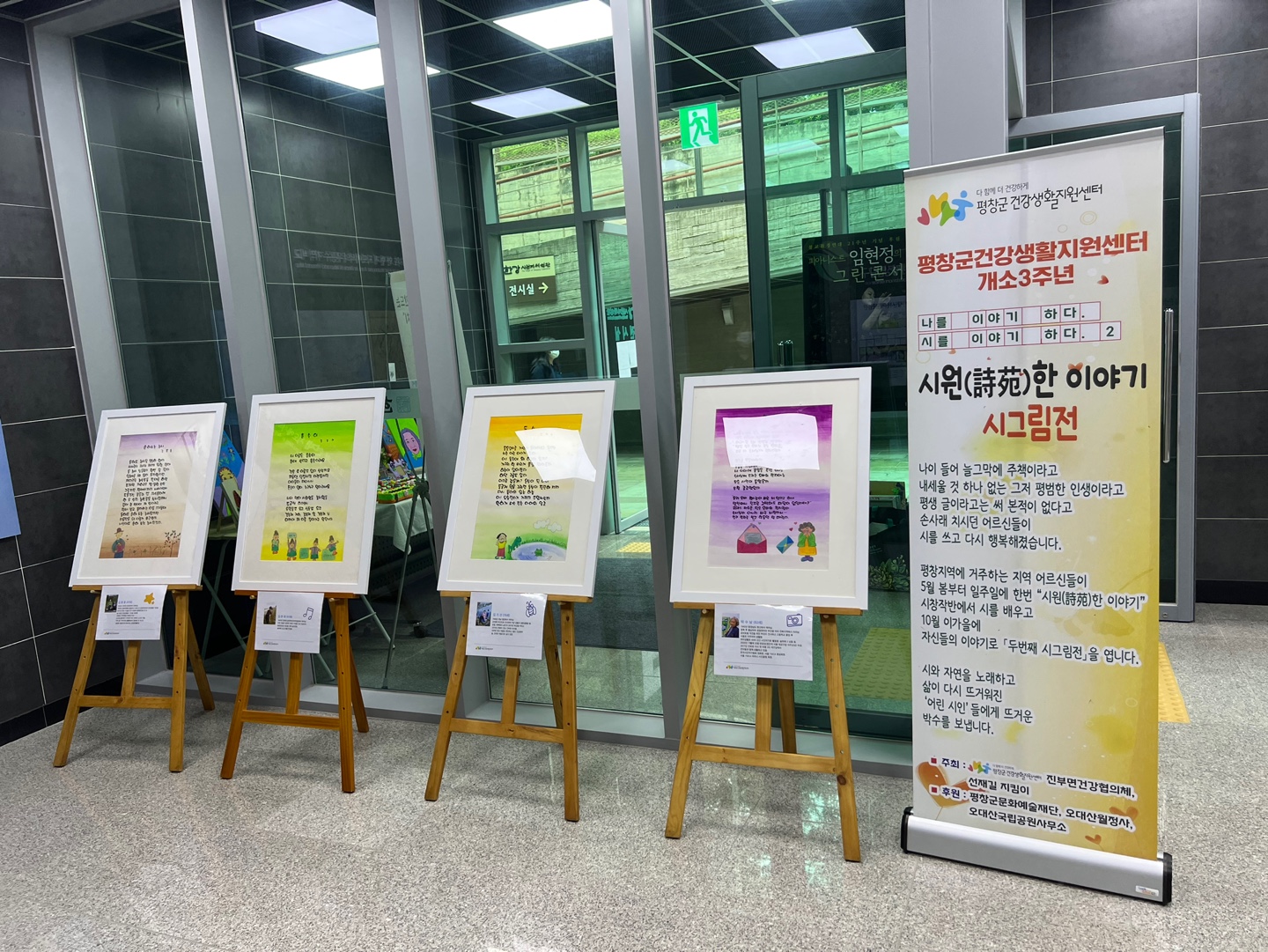 평창군건강생활지원센터는 오는 9월30일까지 오대산 한강시원지 체험관 지하전시실에서 지역 어르신들의 시화 및 미술작품 전시회를 개최한다.