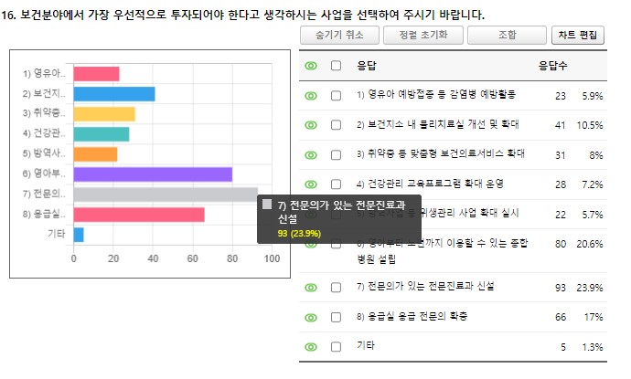 의료원 전문진료와 신설 및 종합병원 설립 등과 같은 세부 사항에 대해서는 해당 부서에서 전반적인 진료 정책 및 운영에 관하여 판단하여야 하는 사항으로 23년 예산편성을 위한 설문조사에는 반영하기 어려운 점 이해 부탁드립니다.