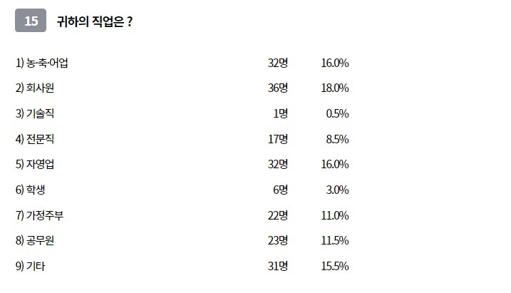 21년도 예산편성 설문조사를 보면 8개 면에서 각각 취합해 총 200명 정도가 참여한 것으로 나타났습니다. 8개면에서는 어떻게 설문조사를 실시했는지 궁금합니다. 특정 단체(이장 협의회 등)에 실시했는지 다수의 주민이 참여할 방법으로 설문을 실시했는지 궁금하며, 다수의 주민이 참여하기 위한 방법을 실시했는지 궁금합니다.
