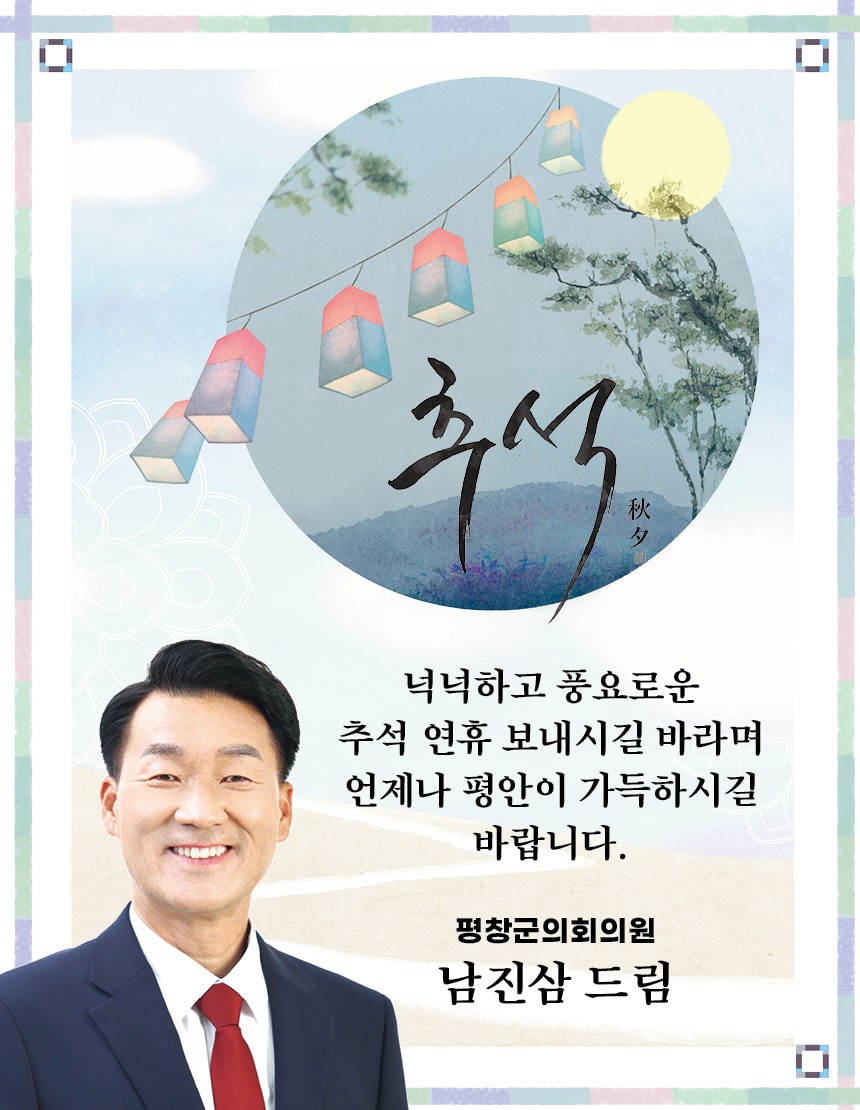 평창군의회 남진삼의원 추석 인사 “소중한 가족과 함께하는 축복 가득한날 되시길 기원합니다”