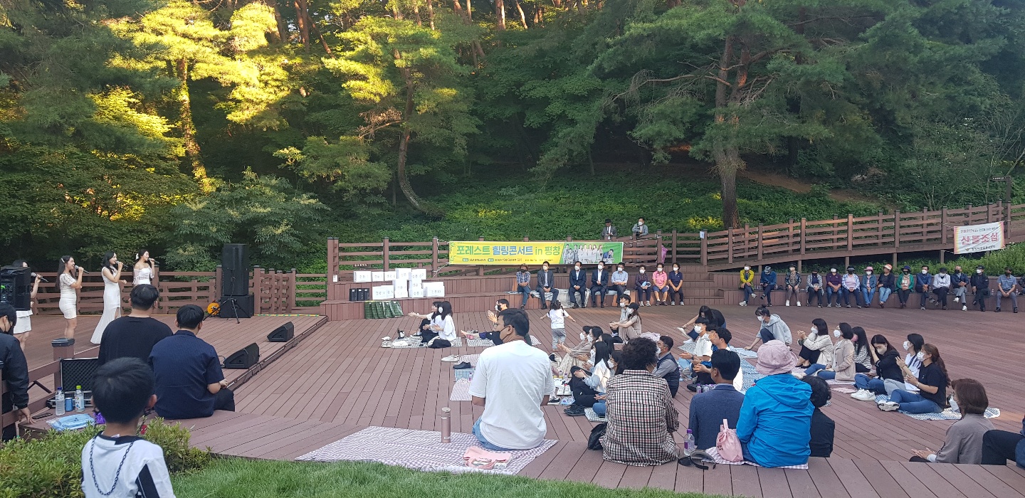 평창군청이 주최하고 평창예술단이 주관하는 '2022 포레스트힐링콘서트 in 평창' 음악회가 지난 8일 평창읍 남산 숲속공연장에서 진행되었다.