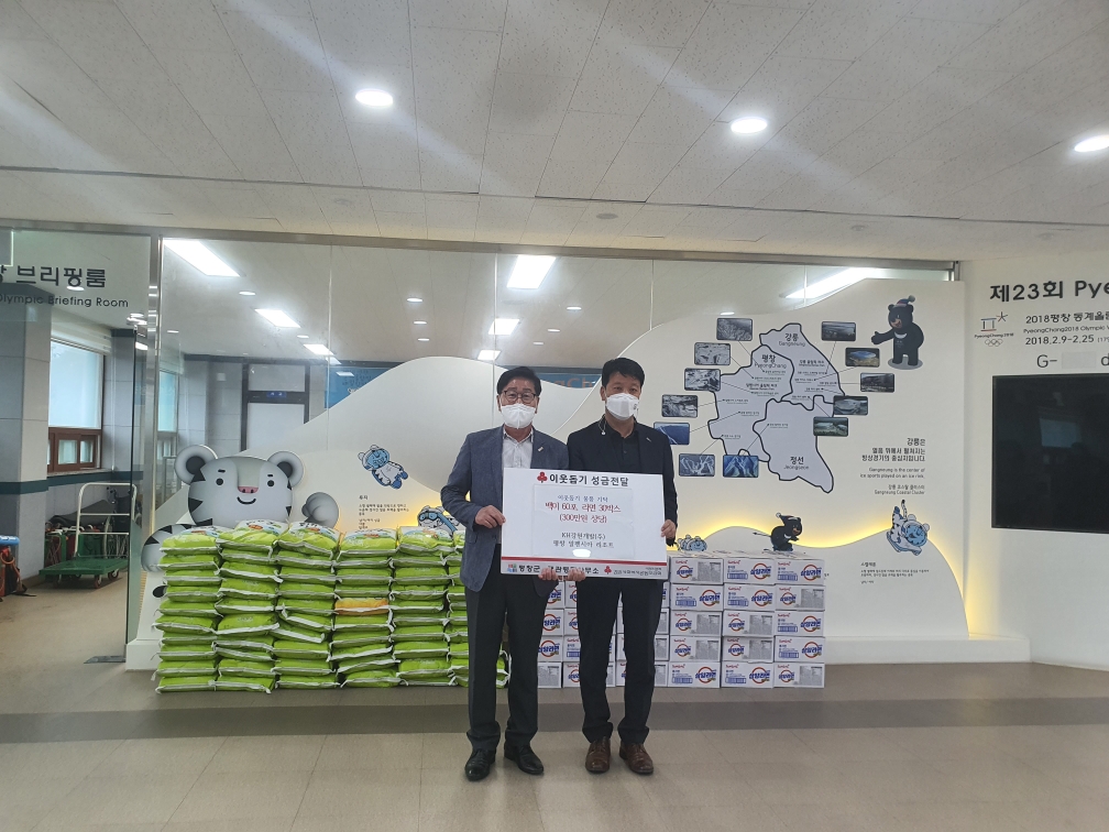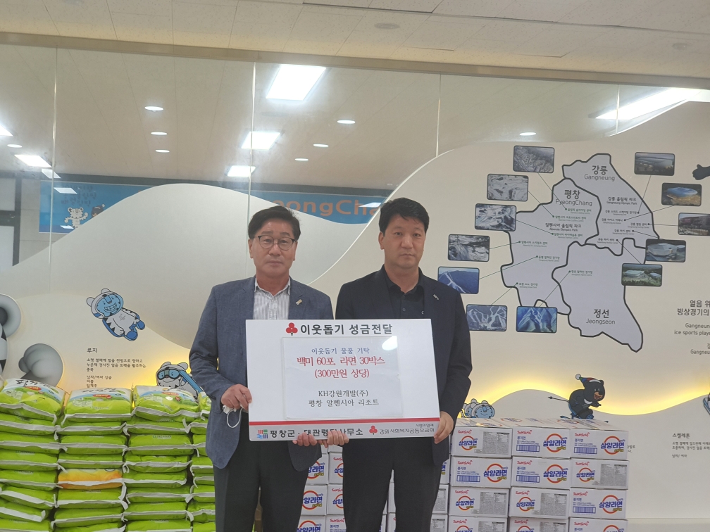 5KH강원개발() 알펜시아 리조트(대표 방규식)에서 추석명절을 맞이하여 300만원 상당의 이웃돕기 물품(백미10kg 60, 라면 30박스)을 대관령면사무소에 기탁했다.