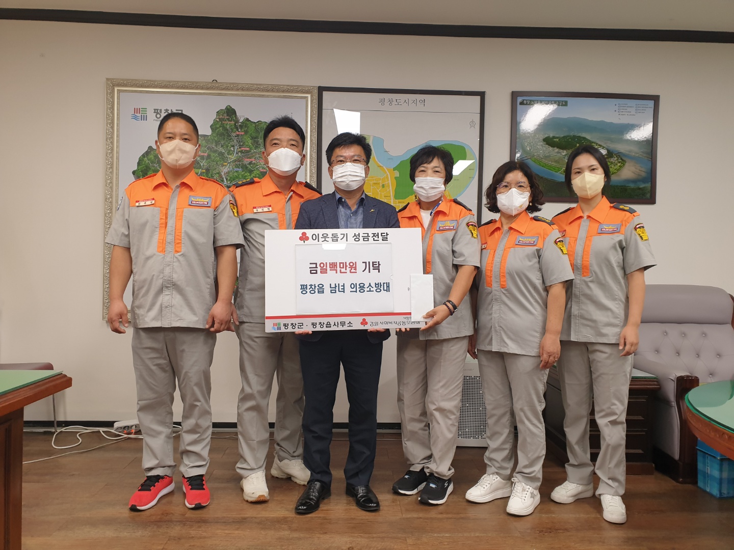 평창읍 남녀 의용소방대는 읍사무소를 방문해 추석을 맞이하여 어려운 이웃들이 풍성한 명절을 보낼 수 있도록 도움을 주고 싶다며 현금 100만원을 기탁했는데, 이번에 기부한 기탁금은 지난 여름 도돈리, 종부리에서 발생한 수난사건 구조와 관련하여 유가족으로부터 감사의 뜻으로 받은 격려금을 전액 기부하는 것이어서 그 의미가 더 크다.