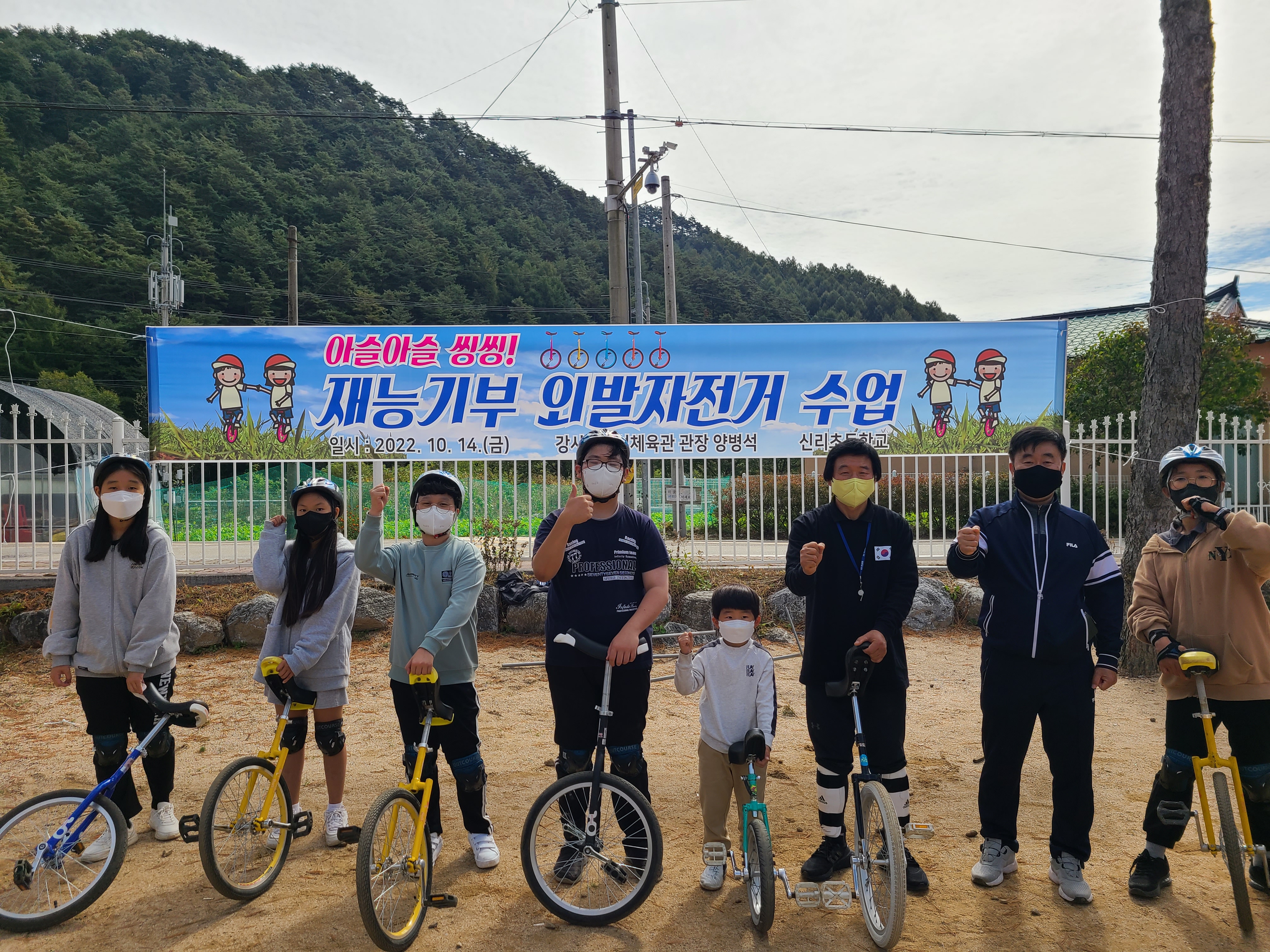 평창 신리초등학교(교장 김진구)는 이달 14일, 학생들의 체력증진과 학교생활의 즐거움, 성취감을 주기 위한 목적으로 원주 효성체육관 양병석 관장(강원도외발자전거협회 부회장/ 강원도태권도협회 부회장)의 재능기부로 외발자전거 교육을 실시 한다고 밝혔다.