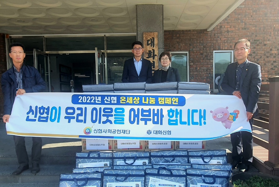 아울러, 김재봉 대화면장은 “모두가 어려운 시기에 도움이 절실한 저소득 주민들께 도움을 주신 대화신협에 다시한번 감사드린다.”며, “기부받은 물품은 추워지기 전에 도움이 필요한 가정에 잘 전달해 드리겠다.”고 말했다.