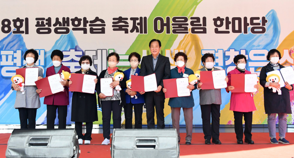 제8회 평생학습축제 어울림 한마당 개최 지난(10.15.) 10:30, 인재육성과(과장 장연규)는 평창군 문화복지센터 광장 일원에서 관내 평생학습 기관·단체와 주민 약 500여 명이 참여한 가운데 ‘제8회 평생학습축제 어울림 한마당’을 개최했다. 이번 어울림 한마당은 「배움은 평생, 축제는 생생, 평창은 상생」이라는 주제로 평생학습 프로그램 16개 팀의 공연과 작품 전시, 평생학습·성인문해교실 홍보, 각종 체험 등을 진행했다. 또한, 문해교실의 최고령 학습자(김춘기, 92세)가 개회 선언문을 낭독하여 참가자들에게 큰 감동을 주었으며, 평생학습·문해교실 유공자 표창, 백일장, 시화전 등 5개 부분 16개 우수작품을 선발해 표창했다.