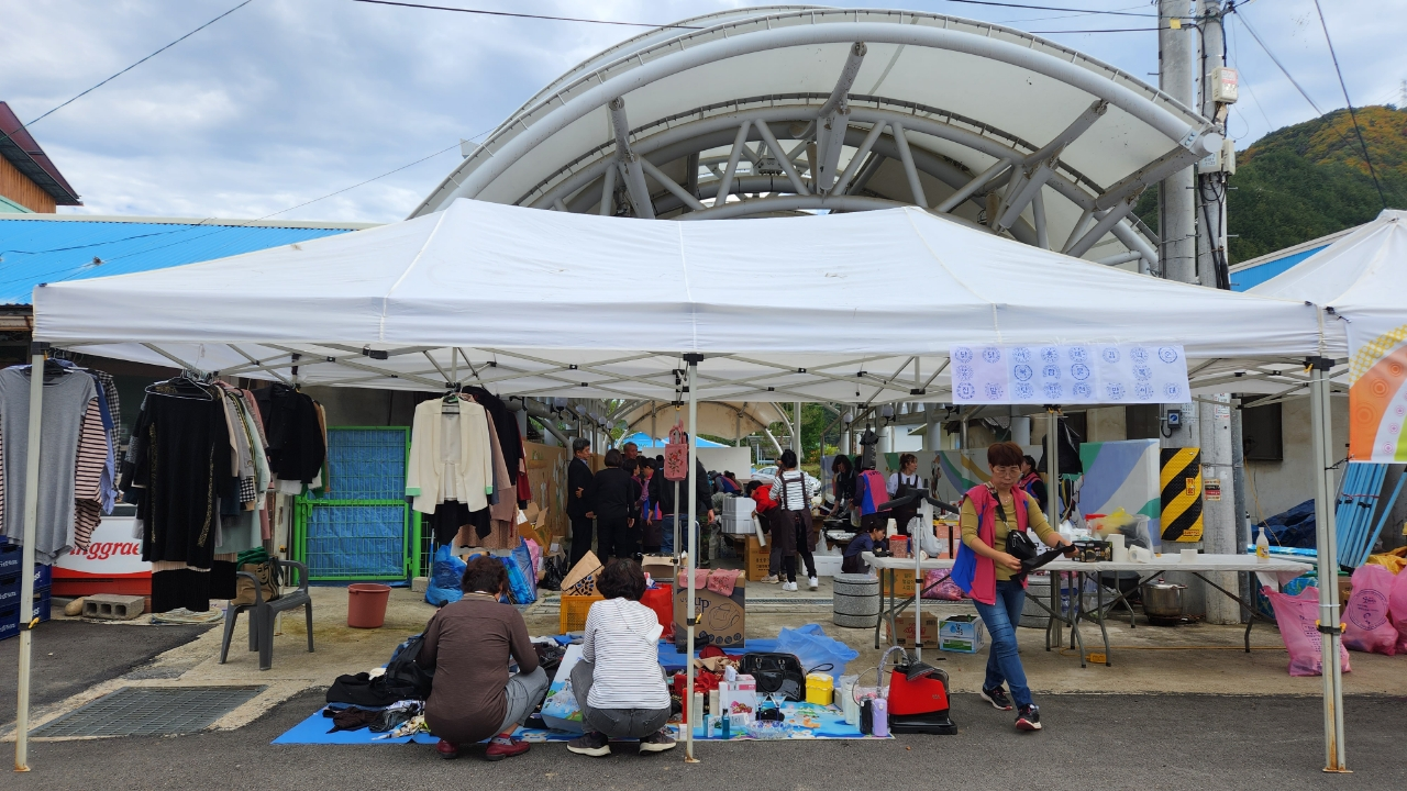 미탄면생활개선회, 기부금 모금을 위한 알뜰시장 운영 지난(10.14.), 미탄면생활개선회(회장 김은화) 회원 20명은 미탄시장에서 의류, 가방 등 중고물품 알뜰장터 운영 및 즉석식품을 판매하였으며, 행사 수익금 일부는 미탄초등학교에 기부할 예정이다.