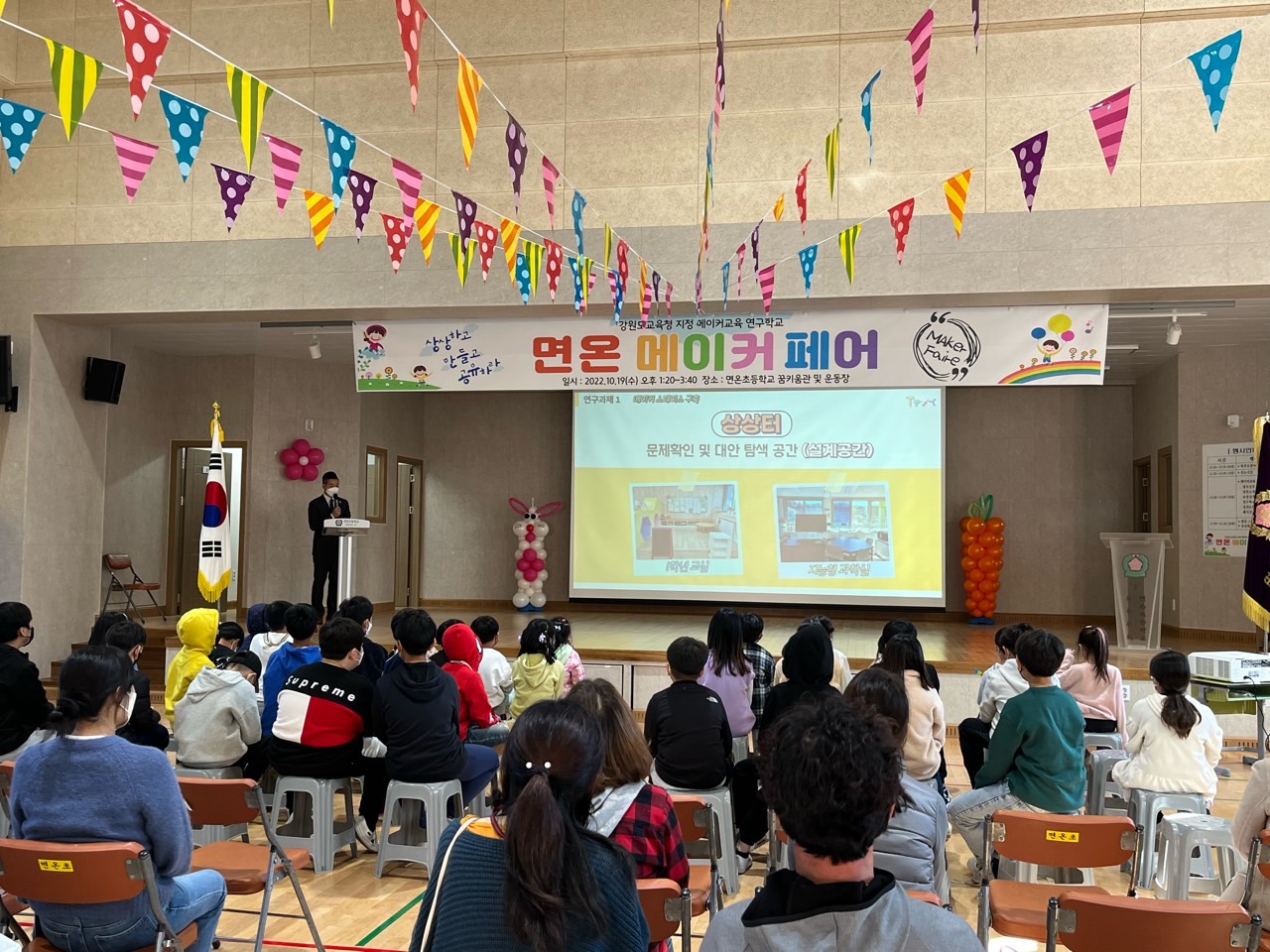 면온초등학교는 2022.10.19.(수)에 교내 꿈키움관에서 학생, 학부모, 교직원, 마을 주민들이 함께 참여하는 ‘2022 면온 메이커페어 축제’를 개최했다.