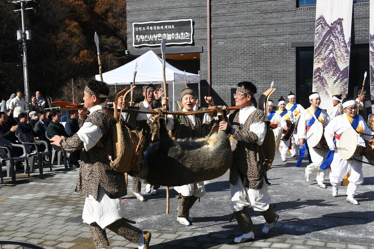 오늘(10.26.) 10:00, 평창황병산사냥민속보존회(회장 최종근)는 황병산사냥민속체험관에서 평창황병산사냥민속놀이 공개행사를 진행하여 1부에는 황병산민속놀이 전승발표, 2부 황병산사냥민속놀이 마당극을 선보일 예정이다. 평창황병산사냥민속은 고원·산간지역의 겨울철 공동체 사냥을 주제로 하는 민속으로, 사냥 방법, 사냥도구 제작, 사냥제 등 강원도 산간지역의 전통적 수렵문화를 보존·전승하는 것을 인정받아 지난 ‘07. 2. 23. 강원도 무형문화재로 지정되었다.