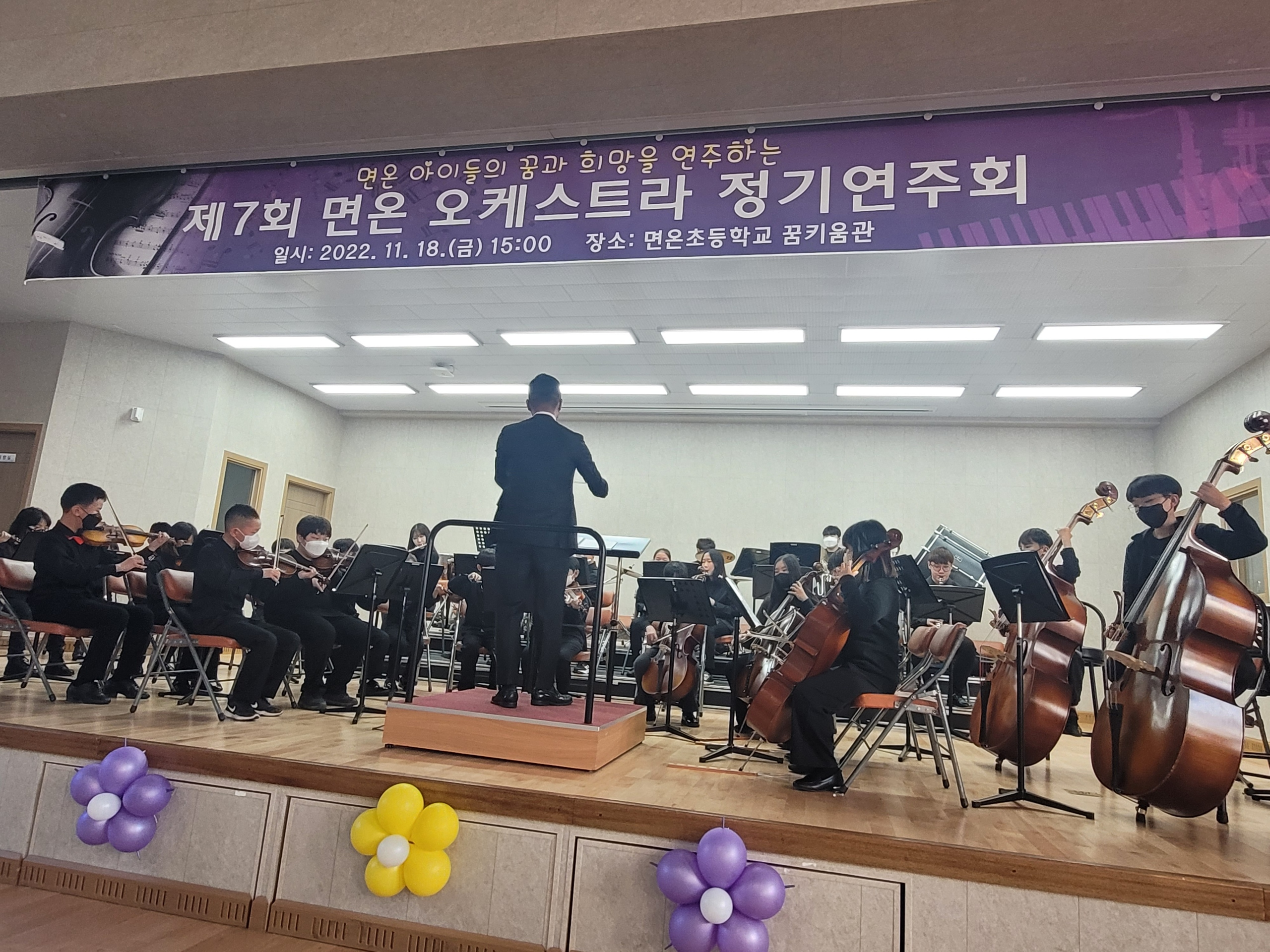 18일, 면온초등학교(교장 오제순) 꿈키움관에서 진행된 ‘면온오케스트라 제7회 정기연주회’가 성황리에 종료되었다. 이날 면온오케스트라는 베르디의 개선행진곡 등 클래식뿐만 아니라, 대중음악, 동요 등을 연주였으며 단원들의 클라리넷 앙상블과 피아노 연주, 유치원과 1학년 예비단원들의 바이올린 연주로 다채로운 무대를 만들어 뜨거운 박수와 찬사를 받았다.