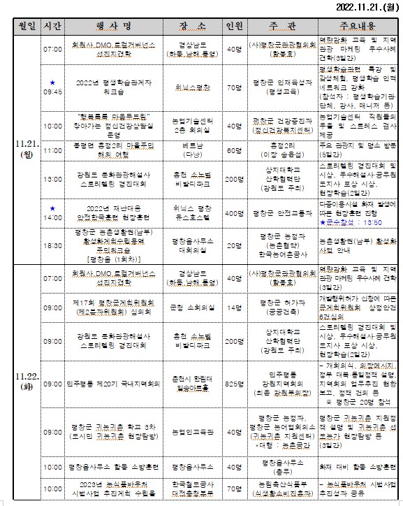 봉평면 지역사회보장협의체 23인(공공위원장 이현진‧민간위원장 최창선)은 11월17일(목)부터 11월21일(월)까지 2022년 특화사업 ‘맞춤형 생활용품 지원(“무엇이 필요하세요?”)’을 추진하고 있다.