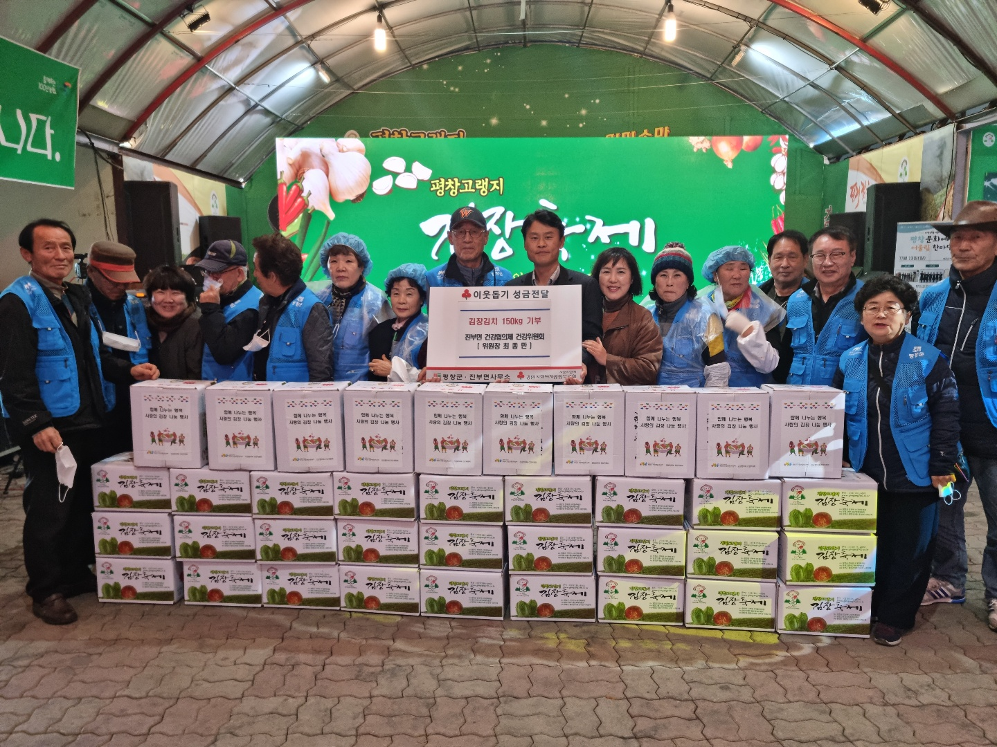 건강협의체 건강위원회는 11월 4일부터 11월 20일까지 김장축제가 진행되고 있는 축제장에서 떡메치기 체험으로 만들어진 인절미와 지역주민들이 기증한 생활용품 등을 판매해 왔으며 발생한 수익금을 독거노인이나 어려운 이웃에게 나눔을 위한 김장김치를 손수 만들어 전달했다.