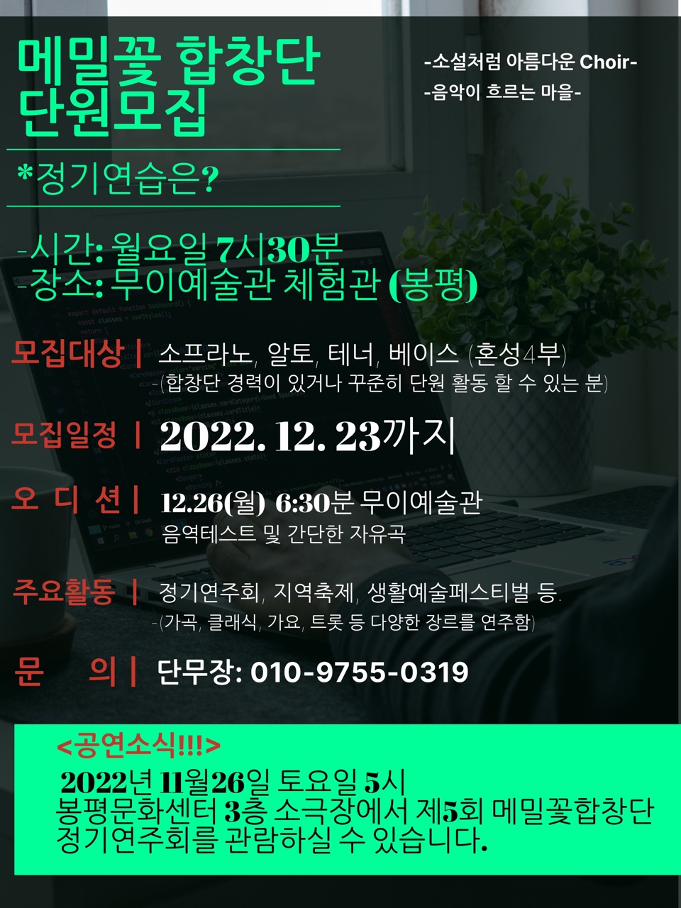 지난 19일 오후 평창군 봉평면 복지센터(다솜관)에서 2022 사랑나눔 투게더 콘서트를 개최하고, 자선공연 수익금은 368만 원 전액을 봉평면사무소에 기탁하였다.