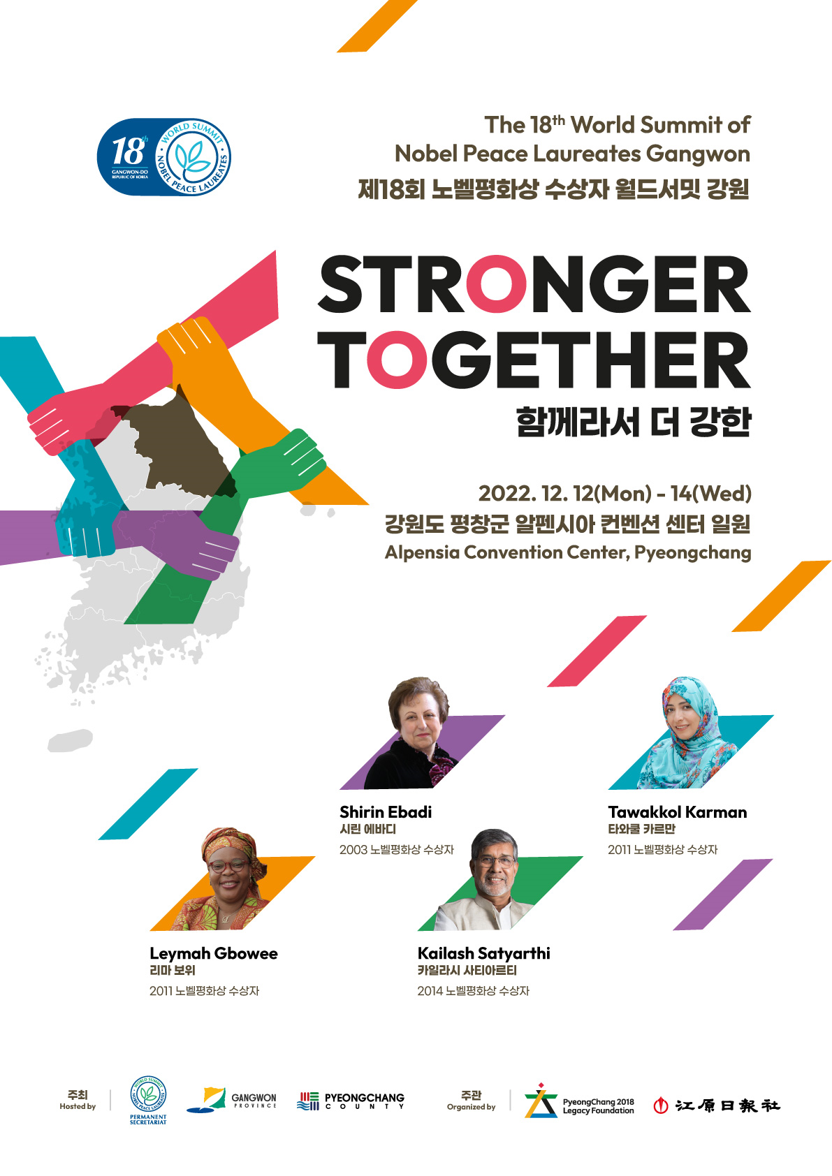 제18회 노벨평화상 수상자 월드서밋이 오는 12월 12일부터 14일까지 3일간, 2018 동계올림픽대회 개최지인 강원도 평창에서 개최된다. 이번 행사에는 세계 각국의 노벨평화상 수상자들이 참석할 예정이다.