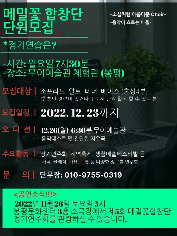 G사운드는 오는 11월 19일 오후 4시 봉평면사무소 다솜관에서 ‘제4회 사랑나눔 투게더 콘서트’를 개최하였다.